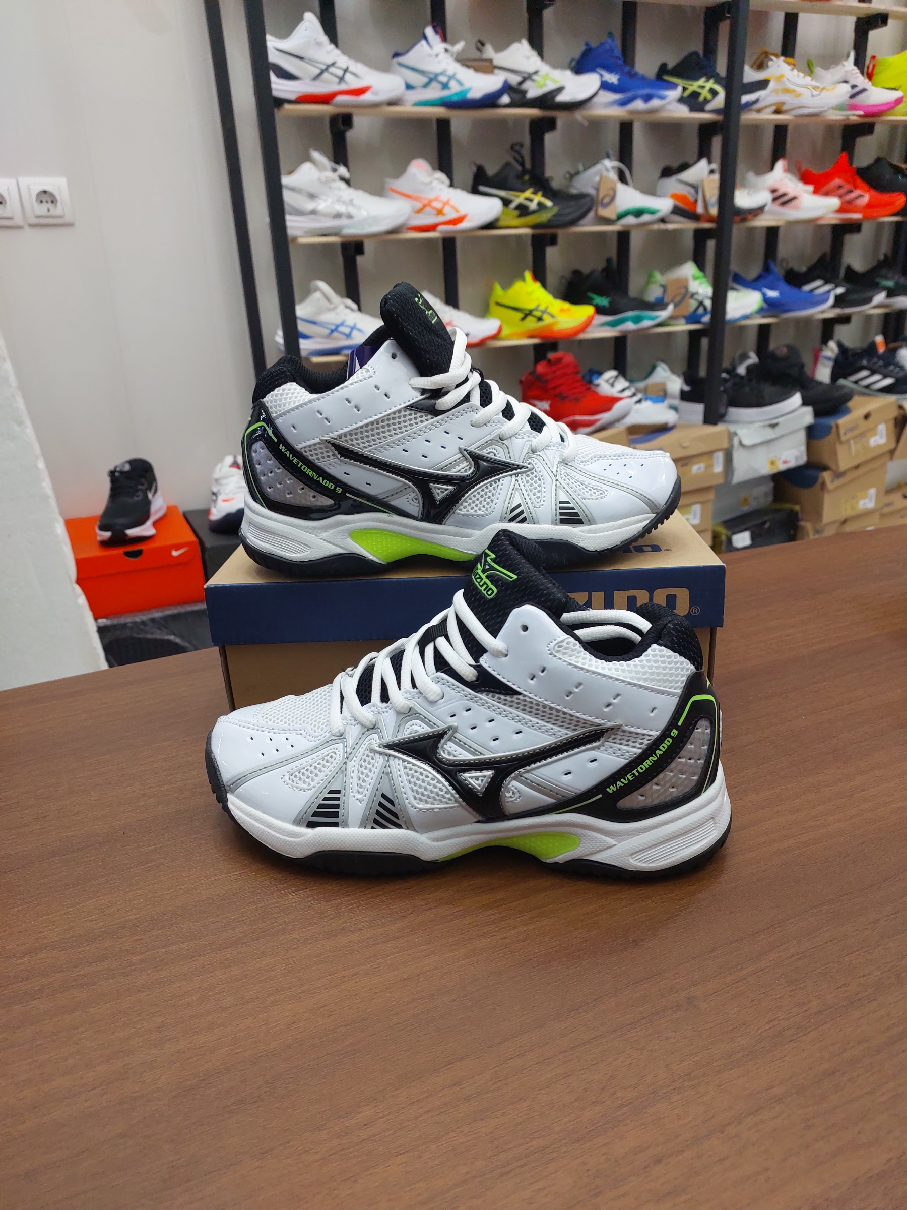 کفش والیبال هندبال بسکتبال میزانو ویو تورنادو 9 بانوان ویتنام رنگ سفید سورم ای فسفری های کپی mizuno wave tornado 9