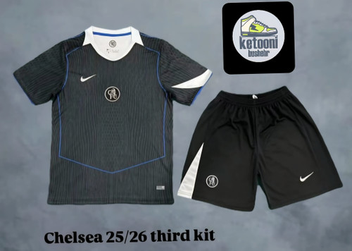 کیت سوم وتیشرت با شورت هواداری تیم چلسی انگلیس ۲۰۲۶ رنگ مشکی تایلندی A++ kit Chelsea 2026