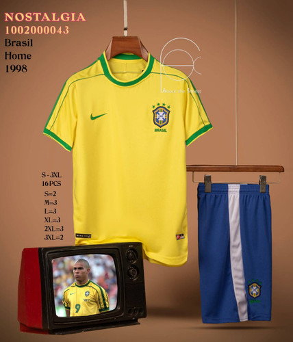 کیت ،تیشرت هواداری کلاسیک و نوستالژی لباس اول تیم ملی برزیل ۱۹۹۸ تایلندی کلاس A++ لباس زرد و شورت آبی