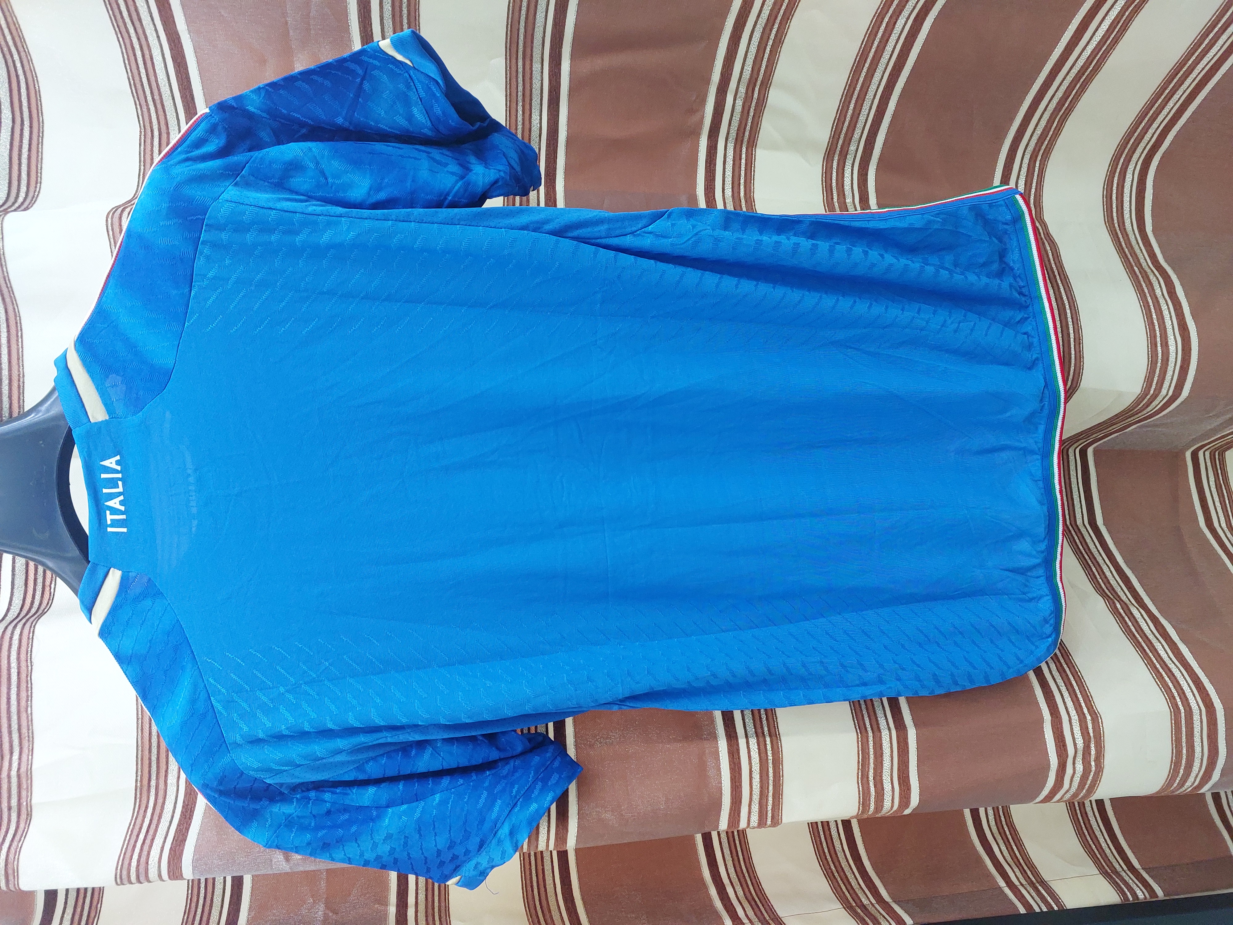 کیت یا تیشرت پلیری بدون شورت باشگاهی و ملی ایتالیا رنگ آبی لاجوردی تایلندی سایزبندی : M,L,XL,2XL سایز :عرض &ارتفاع M:51*71 L : 54*74 XL:57*77 2XL:60*80 مناسب ترین قیمت در سراسر ایران