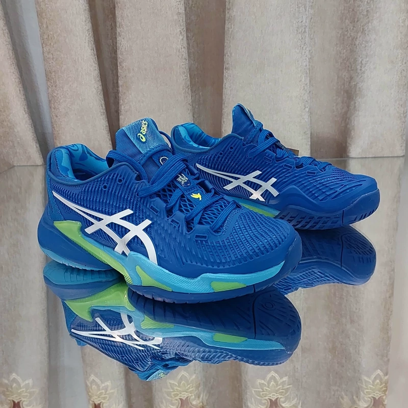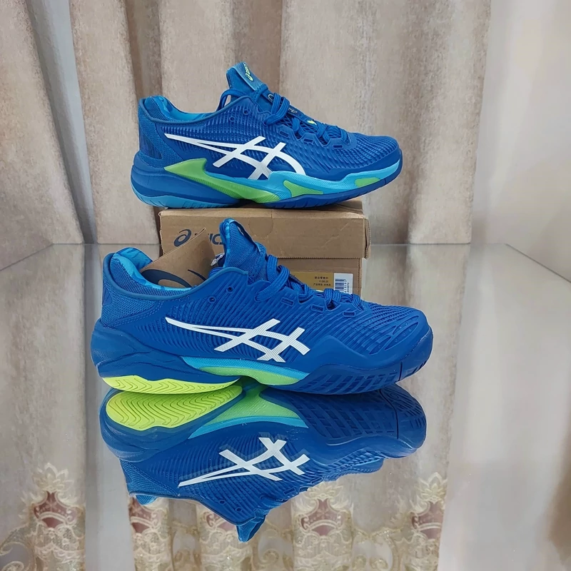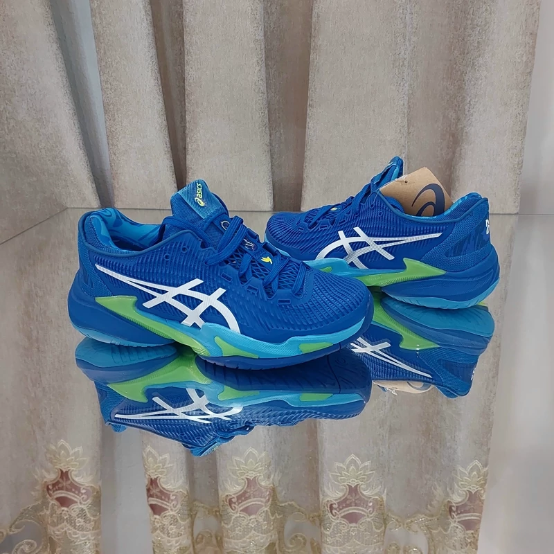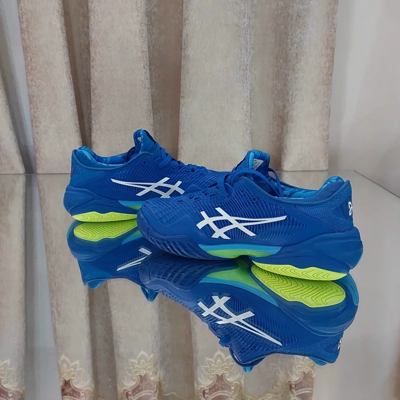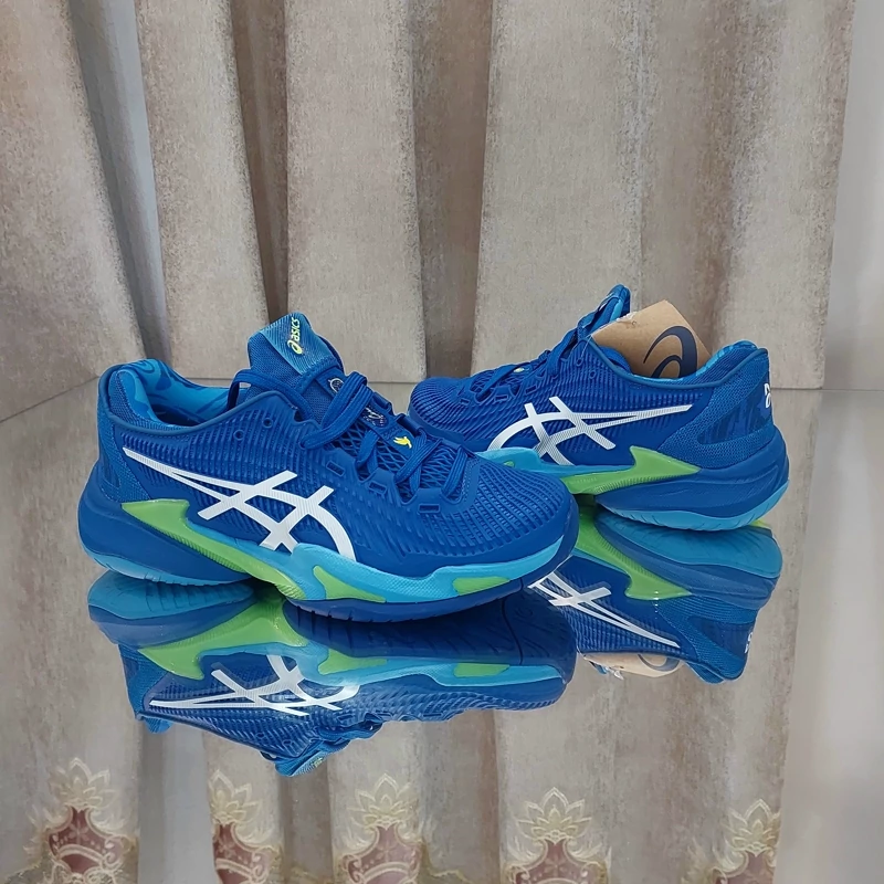 ساخت ویتنام کیفیت اورجیینال سفارش آسیا کفش تنیس مردانه اسیکس Asics Court FF3 Novak CLAY- آبی کفش تنیس مردانه اسیکس Asics Court FF3 Novak CLAY مدلی است که بازیکن صربستانی در زمین های گرند اسلم استرالیا از آن استفاده می کردند. این کفش تنیس ثبات بیشتر و همچنین رویه اصلاح شده با سبکی پویاتر را فراهم می کند. گیمرهایی که به دنبال نهایت تطبیق پذیری با خاک رس هستند و بین سرعت و ثبات نمی توانند انتخاب کنند، این نسخه 3 را دوست خواهند داشت. نوار رنگ آبی و نارنجی برای تکمیل استایل شما عالی است و همچنین لوگوی Novak را روی پاشنه آن خواهید دید.