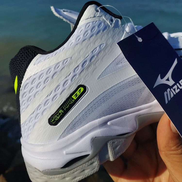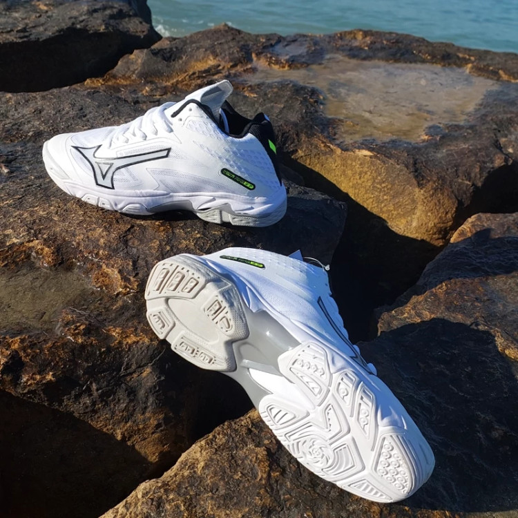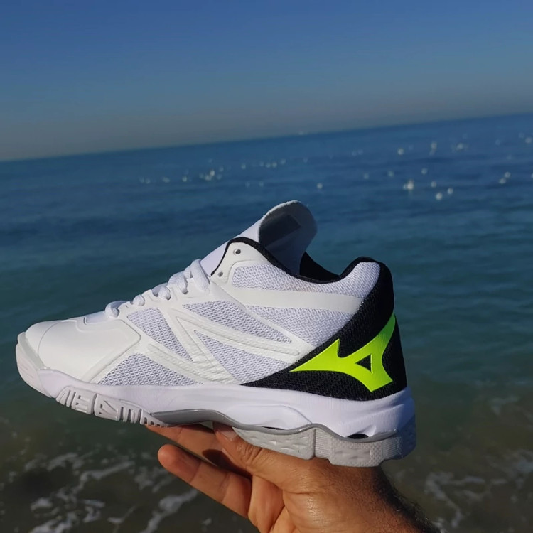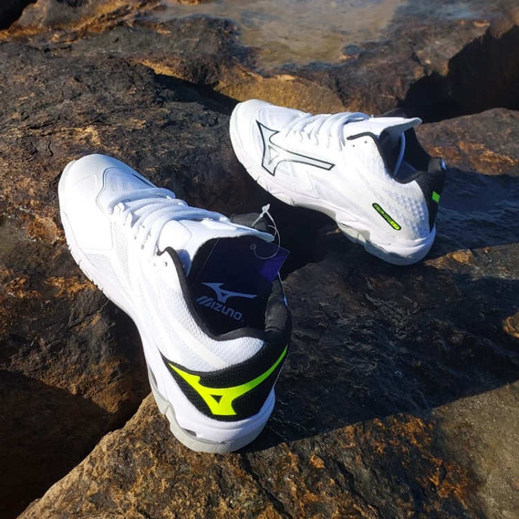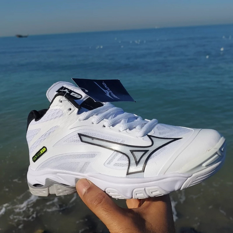 کتونی و کفش والیبال هندبال بسکتبال میزانو لایتنینگ z7 ویتنام های کپی mizuno wave lightning z7 رنگ سفید فسفری مشکی