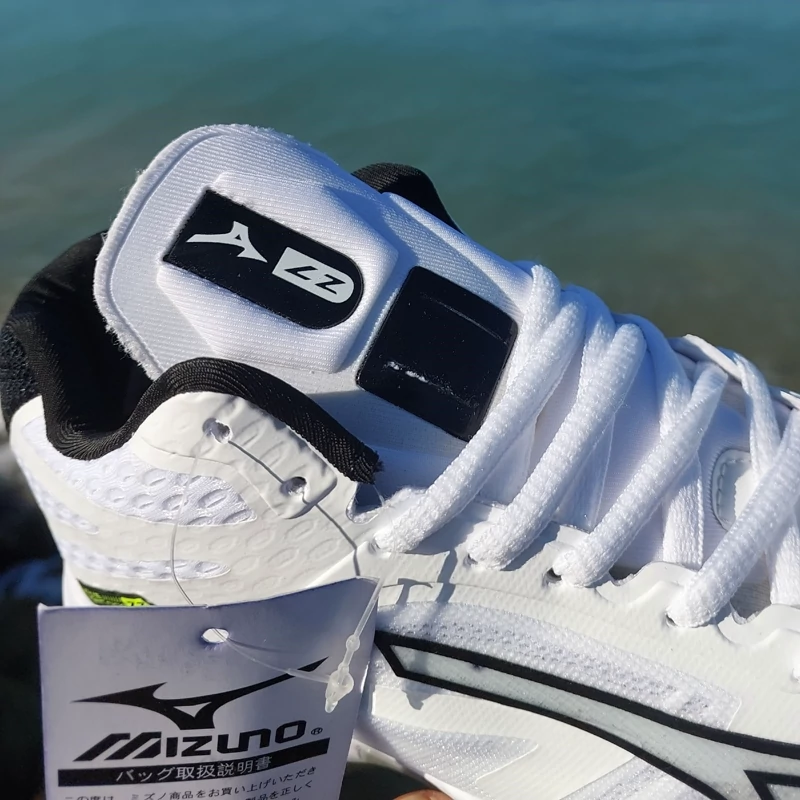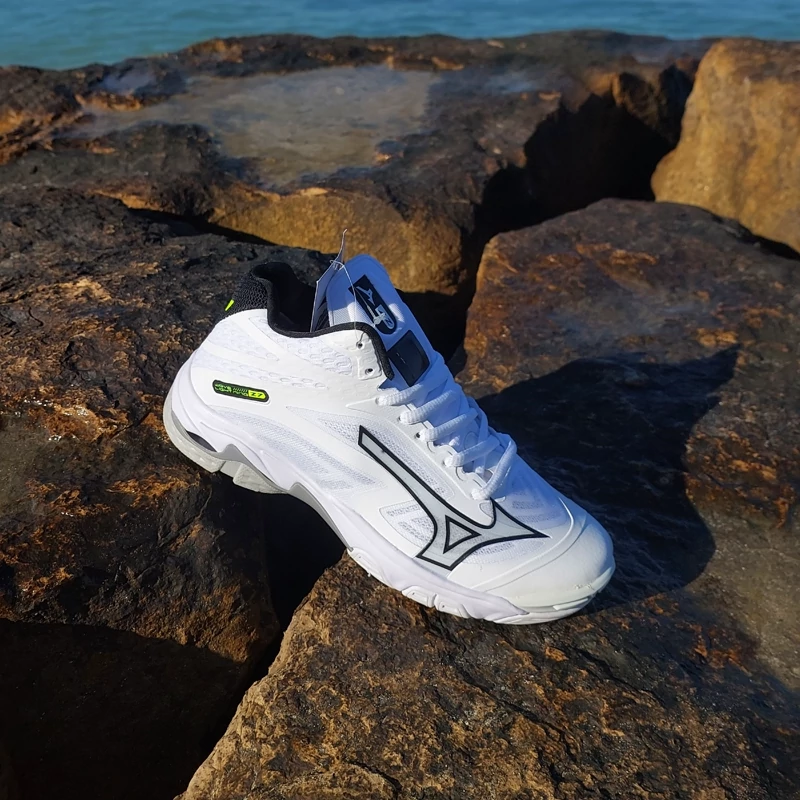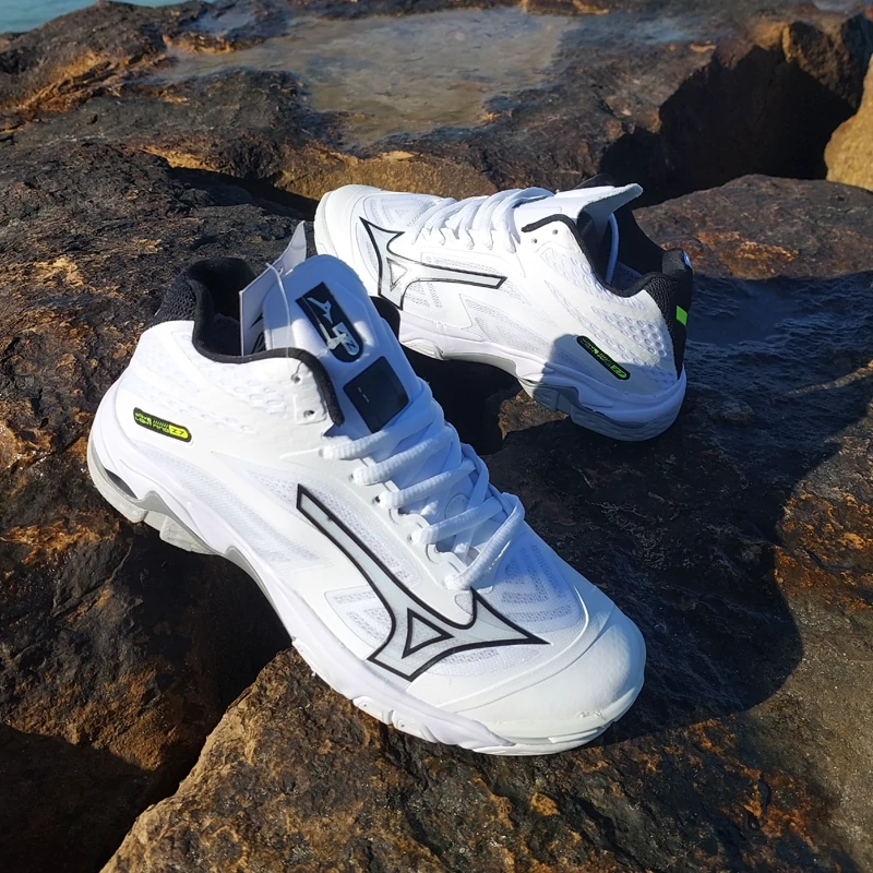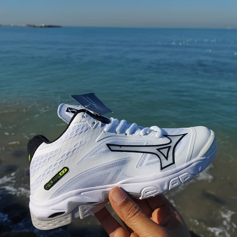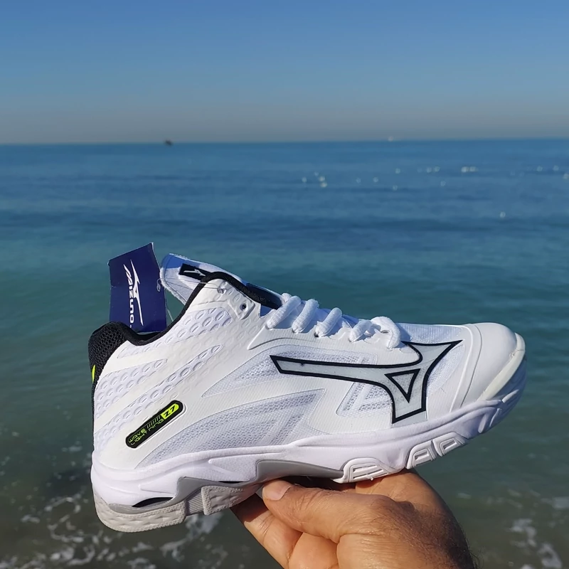 کتونی و کفش والیبال هندبال بسکتبال میزانو لایتنینگ z7 ویتنام های کپی mizuno wave lightning z7 رنگ سفید فسفری مشکی