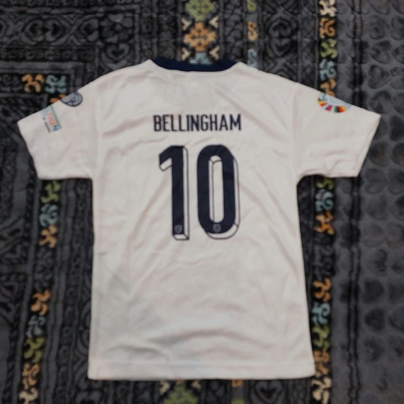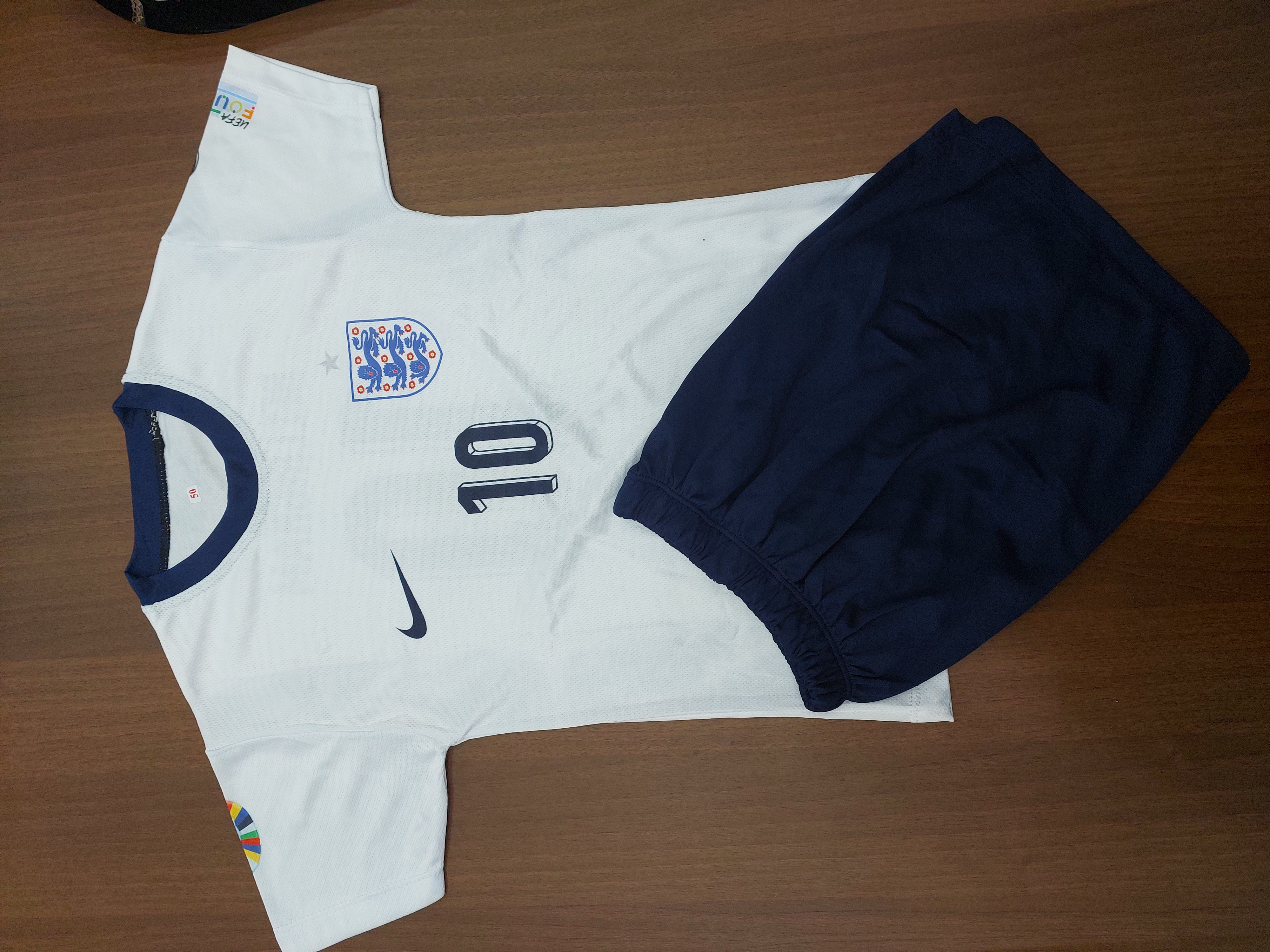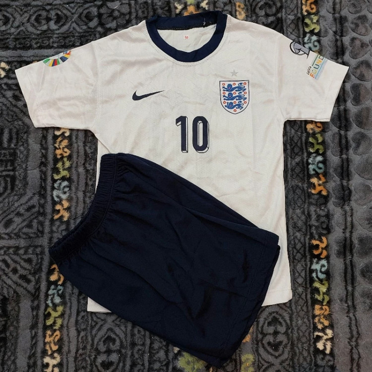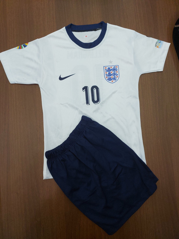 کیت تیشرت با شورت بچه گانه تیم ملی انگلیس انگلستان با نام و شماره بلینگام اندازه سایز بلندی تیشرت عرض تیشرت بلندی شورت 50 51 33 36 60 57 36 38 70 60 39 40 80 63 43 42 90 65 46 45