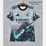 کیت تیشرت با شورت هواداری تیم رئال مادرید 2026 طرح دراگون تایلندی A++ رنگ سفید سبز دودی