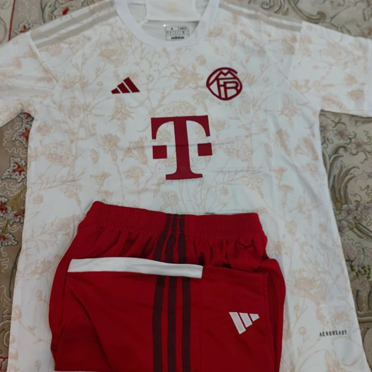 تیشرت و شورت تایلندی درجه یک باشگاه بایرن مونیخ آلمان المان 2023 سفید طلایی