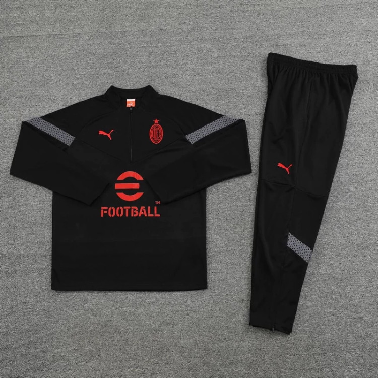 سویشرت و کیت نیم زیپ با شلوار باشگاهی و ملی تیم میلان ایتالیا رنگ مشکی و قرمز تایلندی
