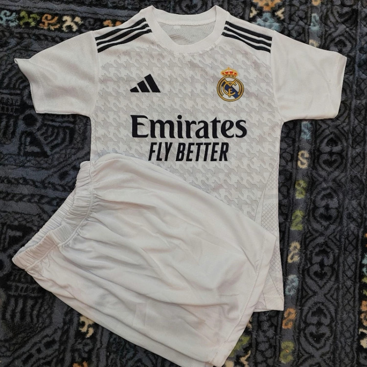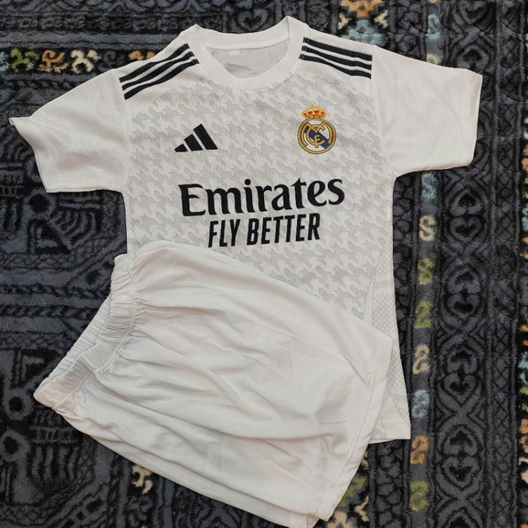 کیت تیشرت با شورت باشگاه رئال مادرید با شماره امباپه بلینگام وینسیوس جونیور ارسال رایگان اندازه سایز بلندی تیشرت عرض تیشرت بلندی شورت 50 51 33 36 60 57 36 38 70 60 39 40 80 63 43 42 90 65 46 45
