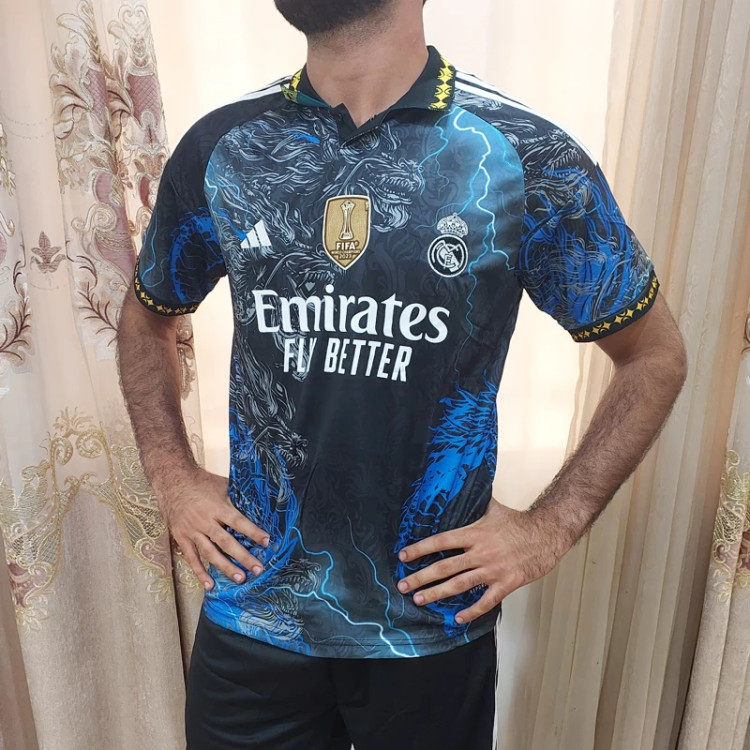 کیت تیشرت با شورت اذرخش کانسپت دراگون تیم باشگاهی رئال مادرید طرح آذرخش 2025 تایلندی درجه یک