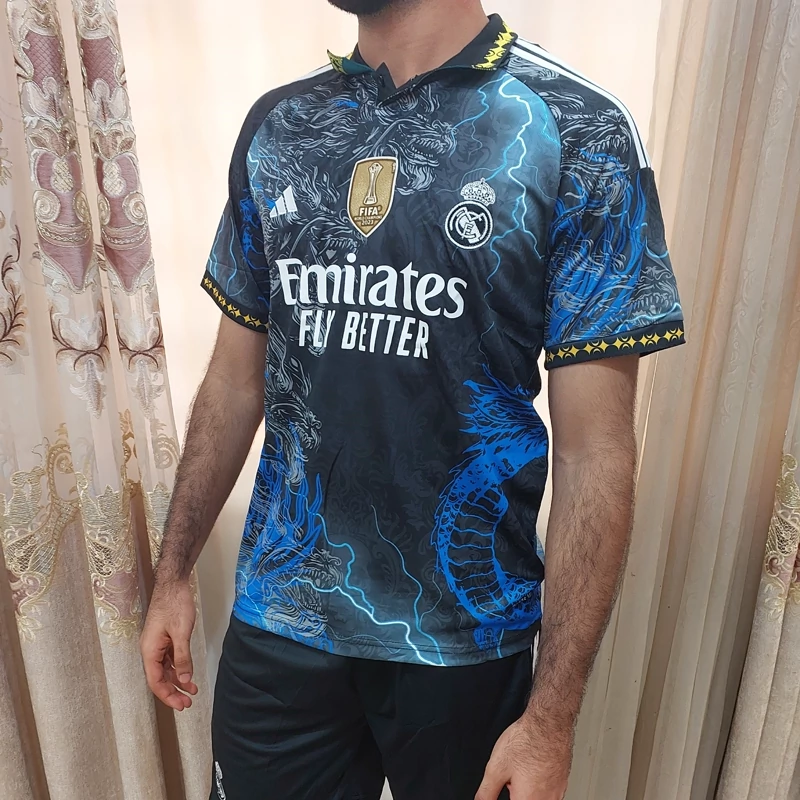 کیت تیشرت با شورت اذرخش کانسپت دراگون تیم باشگاهی رئال مادرید طرح آذرخش 2025 تایلندی درجه یک