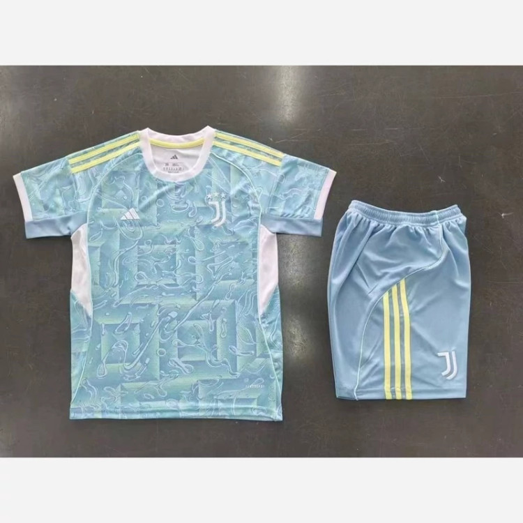 کیت تیشرت با شورت اصلی هواداری تیم یوونتوس ایتالیا 2026 رنگ فیروزه ای سفید تایلندی A++ بچه گانه
