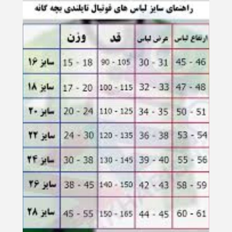 جدول اندازه پیوست تصاویر هست قبل از ثبت سفارش استعلام موجودی گرفته شود