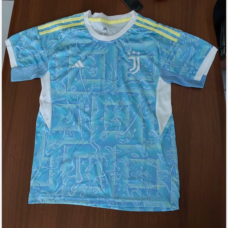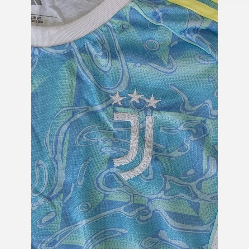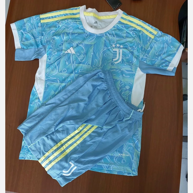 کیت تیشرت با شورت اصلی هواداری تیم یوونتوس ایتالیا 2026 رنگ فیروزه ای سفید تایلندی A++ بچه گانه