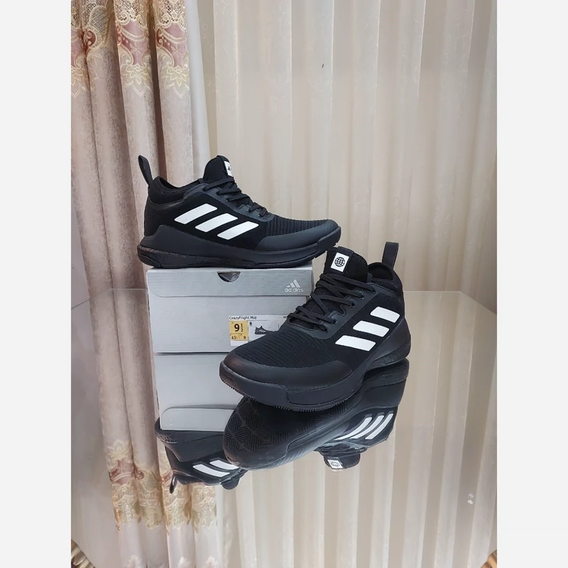 کتونی والیبال هندبال بسکتبال آدیداس کریزی فلایت مید adidas crazy flight mid مسترکوالیتی ویتنام رنگ مشکی خط سفید