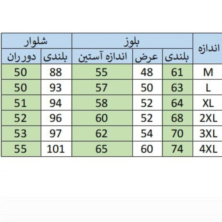 سایز L تا 4XL