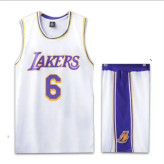 رکابی پیراهن شورت بسکتبالی لس آنجلس لیکرز رنگ سفید بنفش شماره 6 جیمز تایلندی کلاس A++ ارسال رایگان
