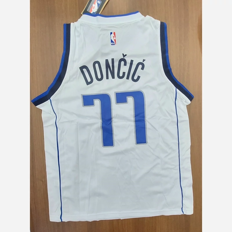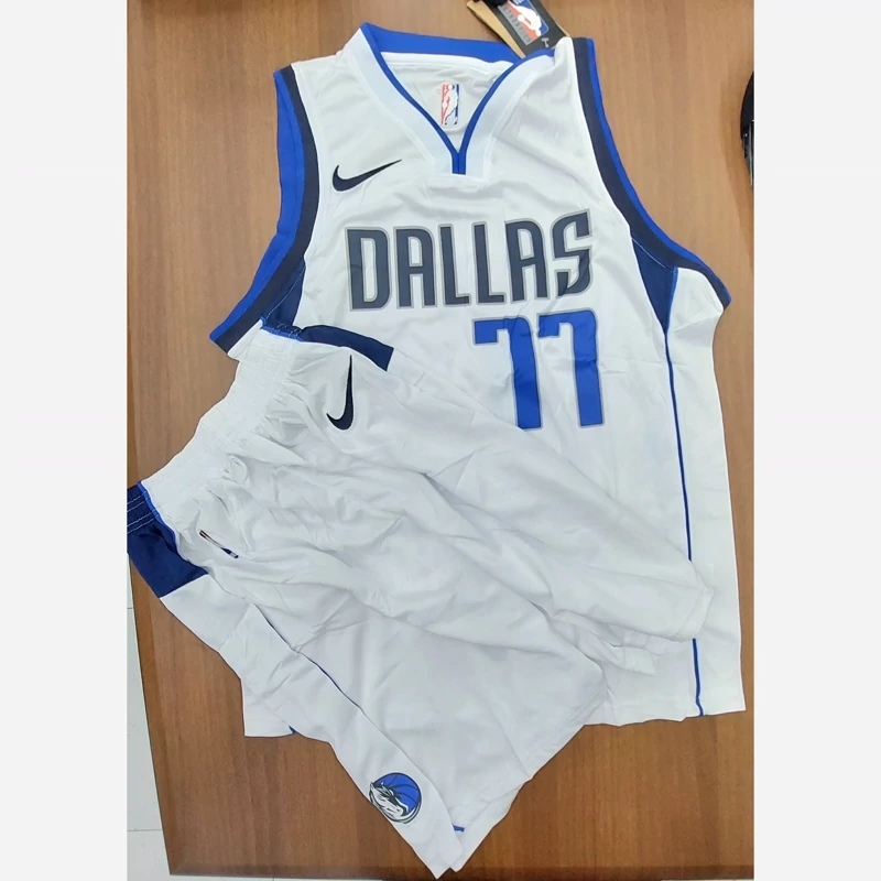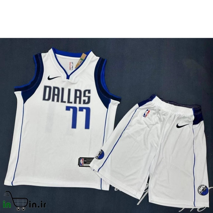 رکابی لباس بسکتبال دالاس ماوریکس سفید 2025 به همراه شورت شماره 77 دانسیک ست بسکتبالی تایلندی