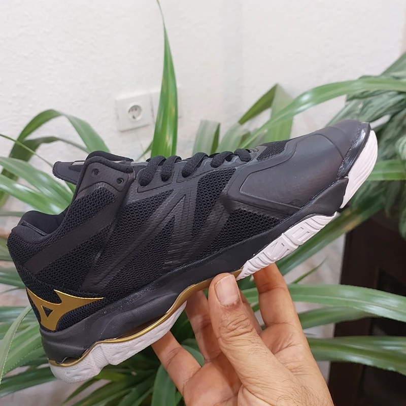 کتونی و کفش والیبال هندبال بسکتبال میزانو لایتنینگ z7 ویتنام های کپی mizuno wave lightning z7 رنگ مشکی طلایی