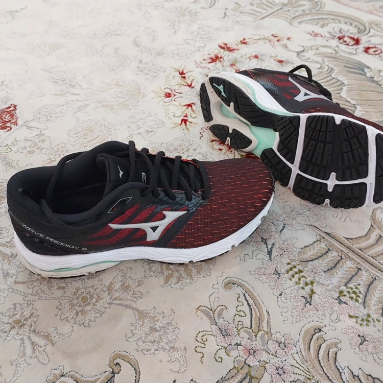 کتونی اورجینال رانینگ پیاده روی و دویدن mizuno wave prodigy 3 سایز38 برابر 24 سانت مشکی جگری