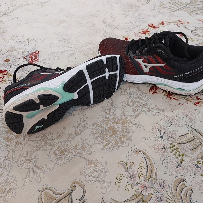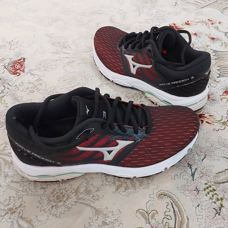کتونی اورجینال رانینگ پیاده روی و دویدن mizuno wave prodigy 3 سایز38 برابر 24 سانت مشکی جگری