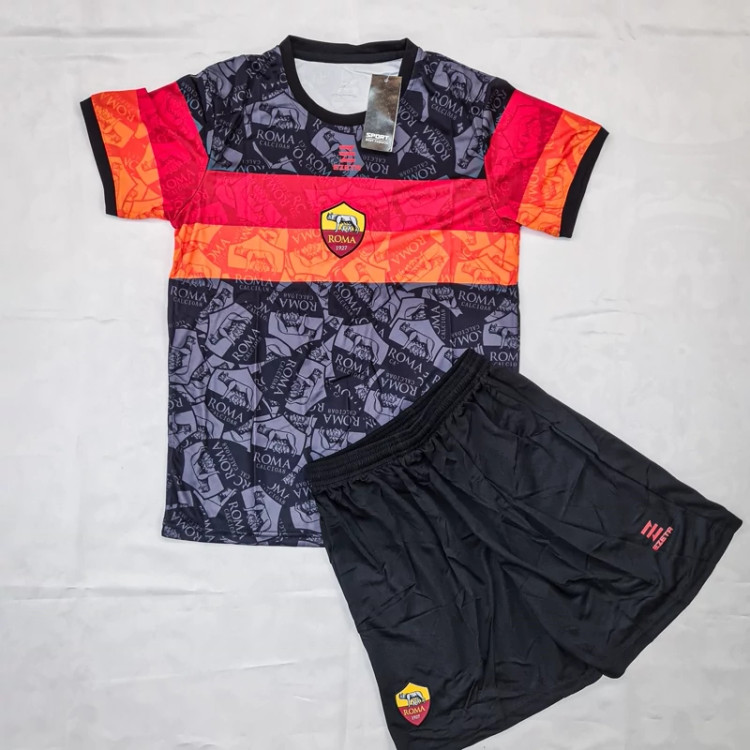 کیت تیشرت با شورت باشگاهی و ملی تیم رم ایتالیا رنگ مشکی و نوار قرمز