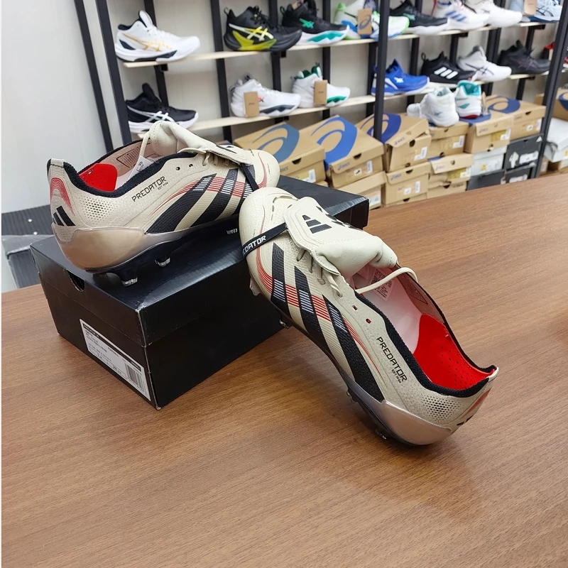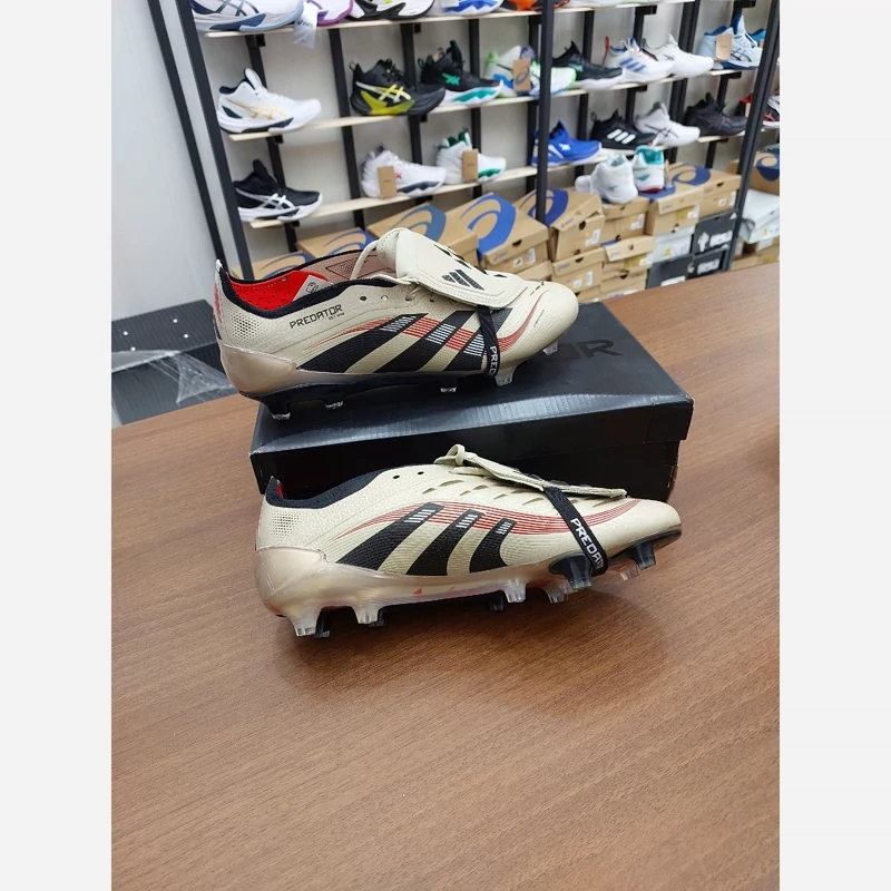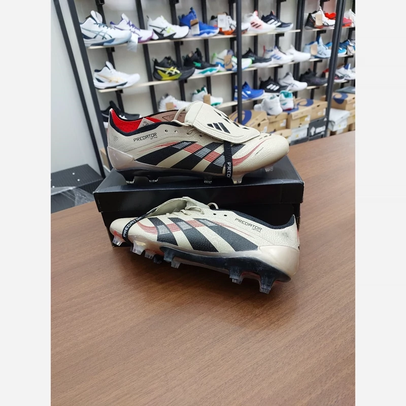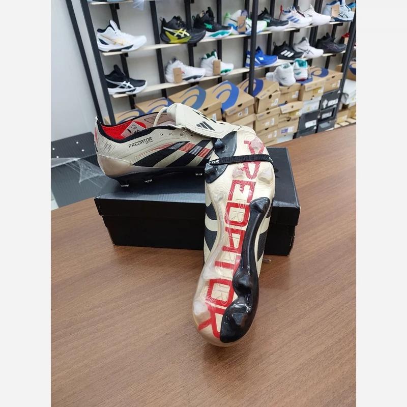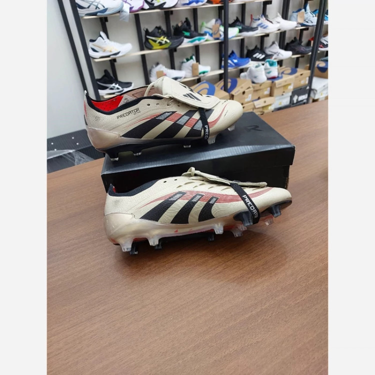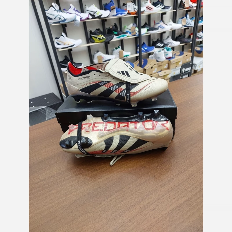 کفش فوتبال چمن آدیداس استوکدار بلینگام Predator Edge 2025 رنگ کرم مشکی یا بژ Adidas Predator کفش فوتبال آدیداس از جمله کارهای قدرتی سرعتی Adidas فناوری DemonSkin : انقلابی در رویه کفش با ایجاد خارهای کوچک و بزرگ برای ضربات حرفه ای تر