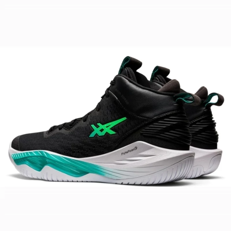 کفش کتونی ساق بلند والیبال بسکتبال اسیکس مدل نوا سورج سورژ asics NOVA SURGE 2023 کیفیت های کپی ویتنام رنگ مشکی سبز