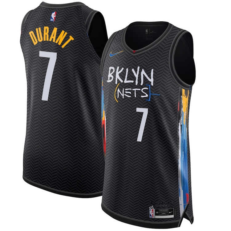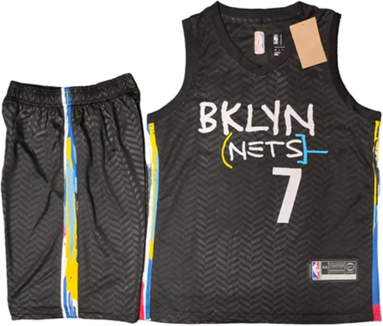 رکابی لباس بسکتبالی نام و شماره بروکلین نتس مشکی کوین دورانت ۷ NBA ست بسکتبالی رنگ سفید مشکی تایلندی کلاس A++