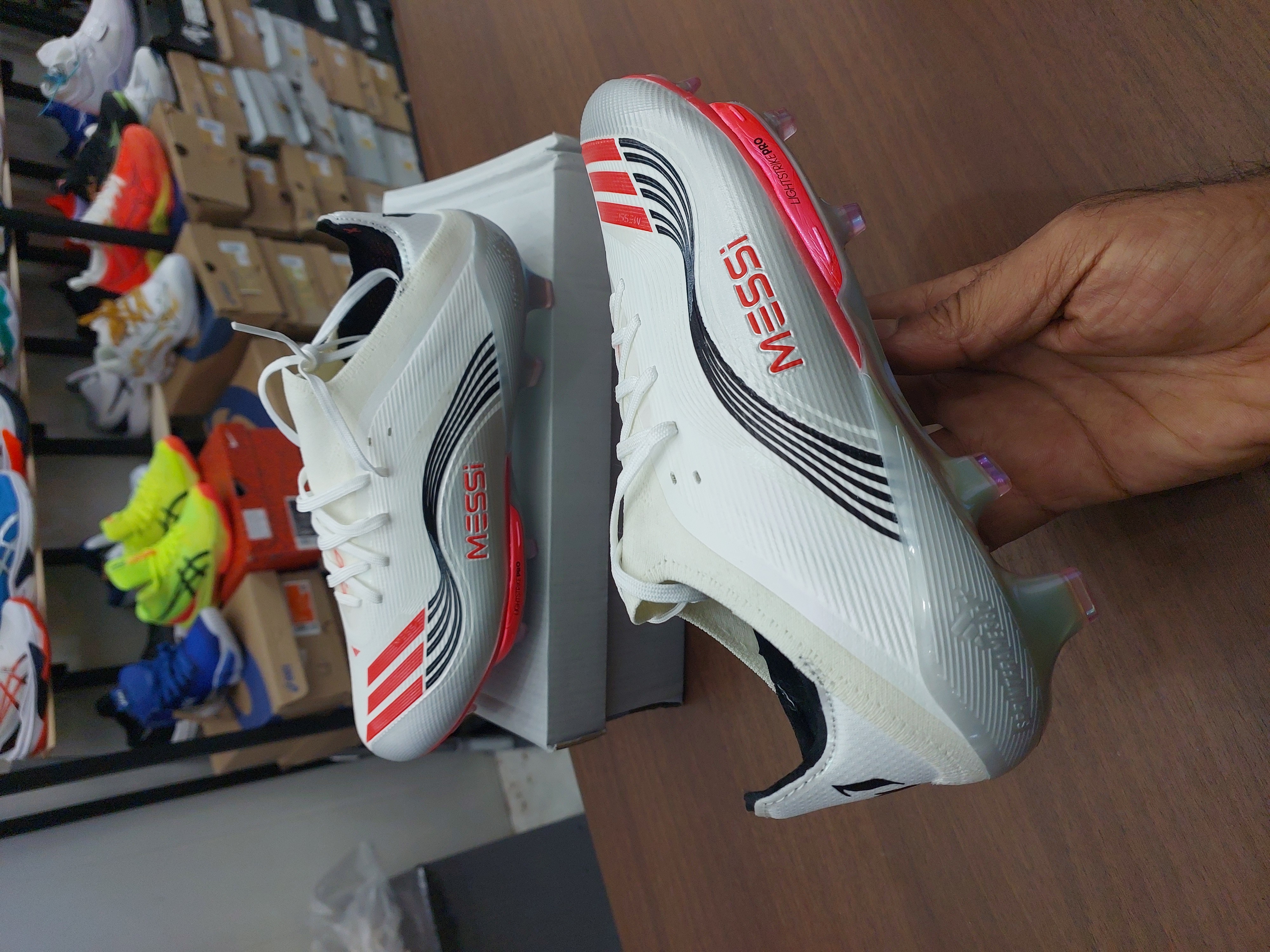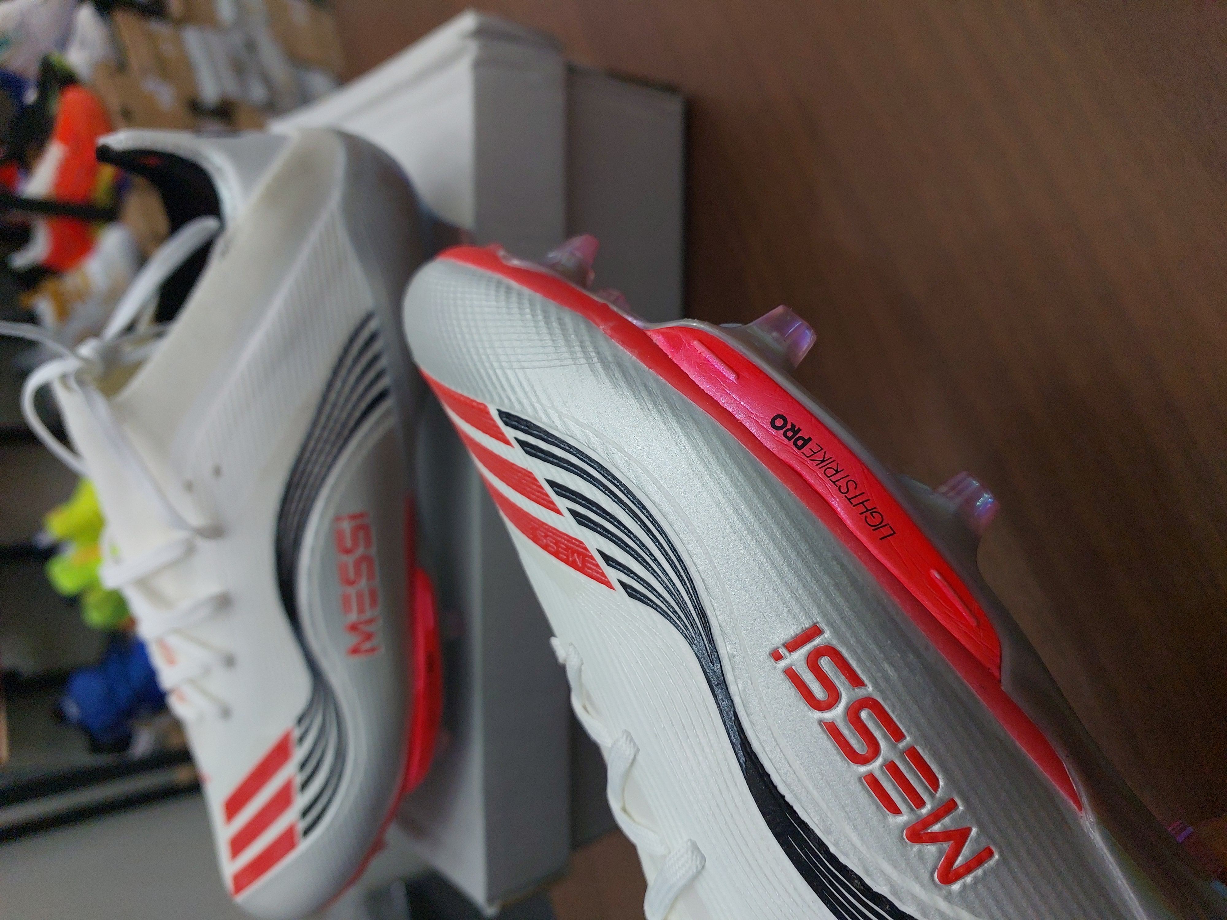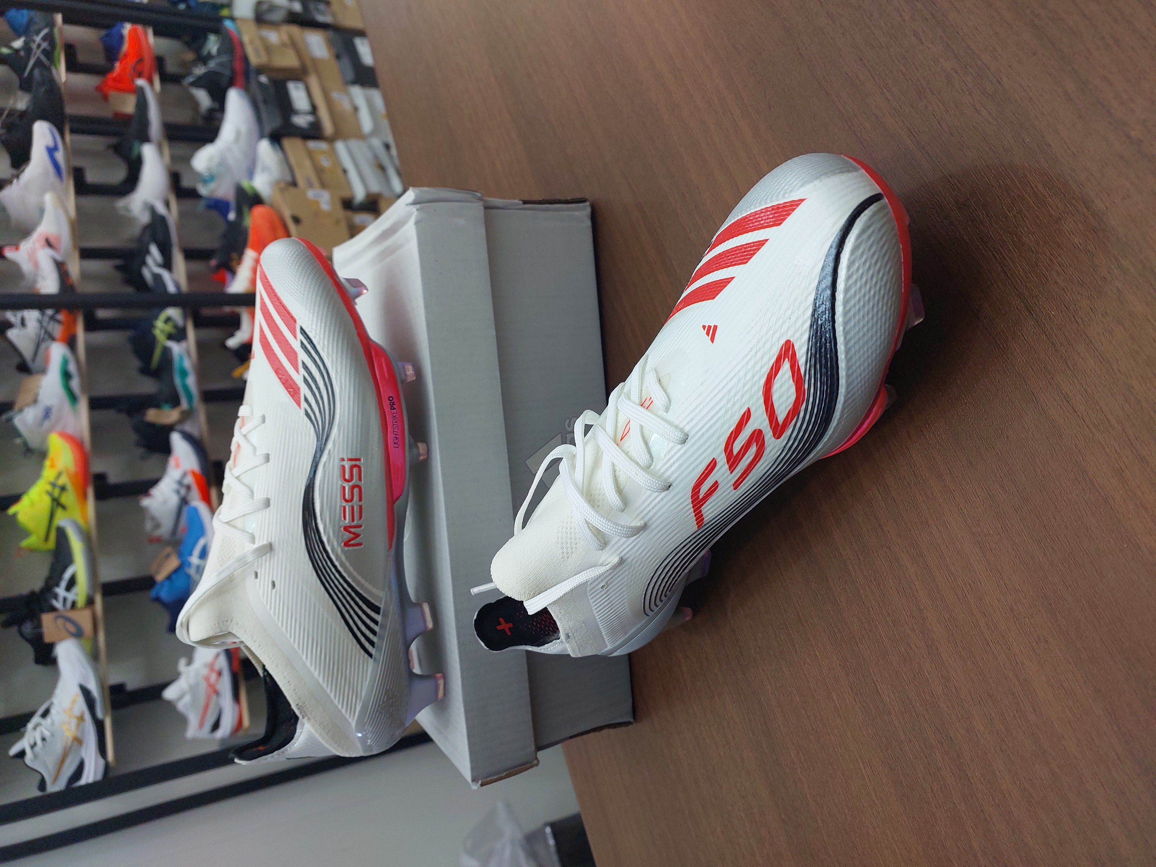 کفش فوتبال چمن آدیداس اف۵۰ مسی استوکدار رنگ سفیدصورتی Adidas f50+fg