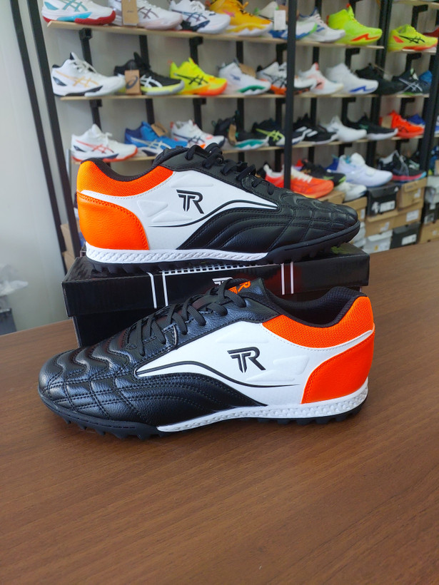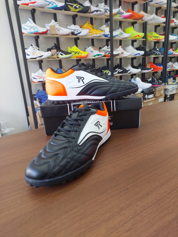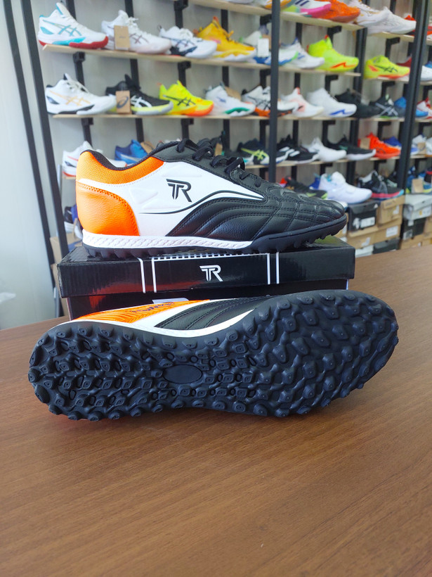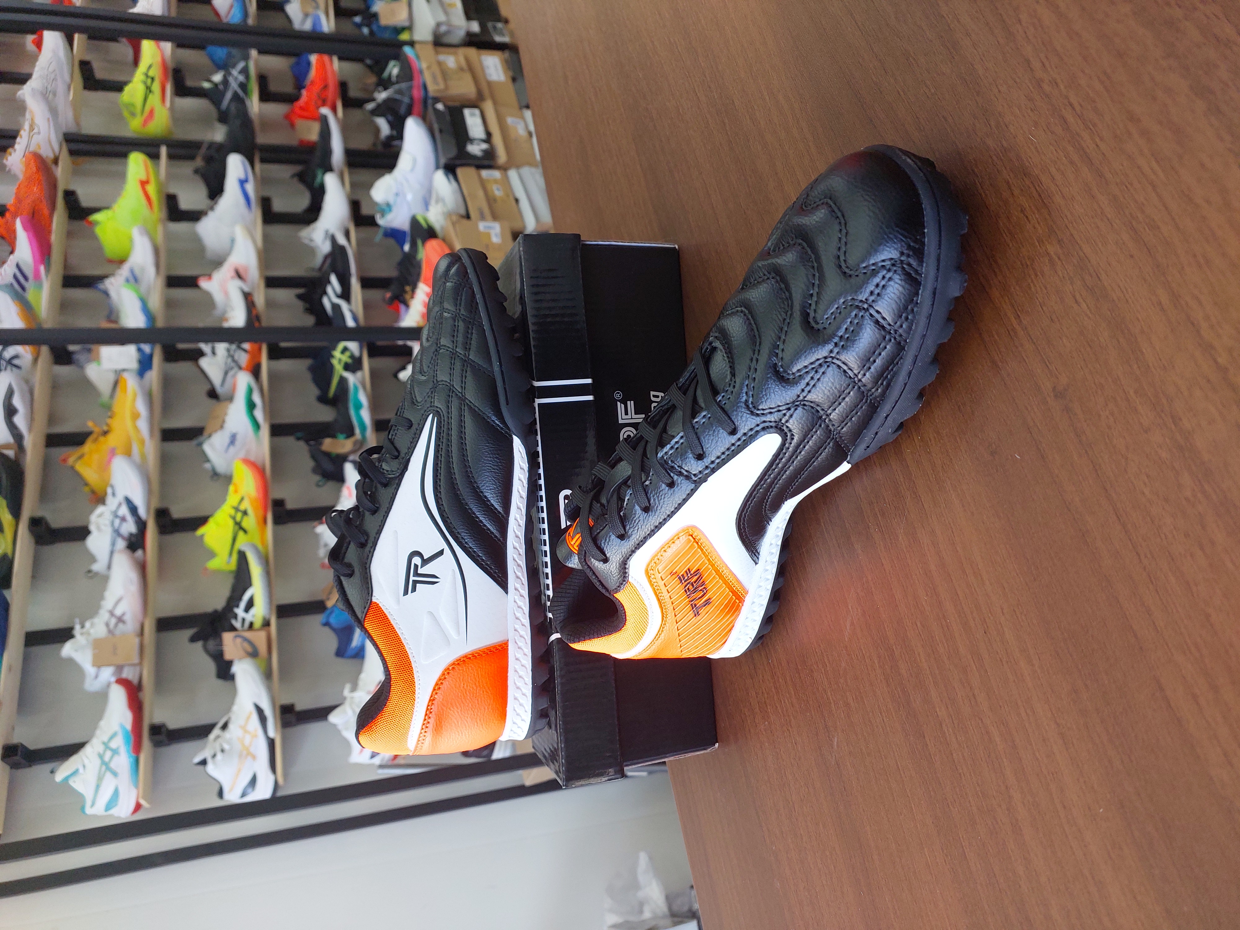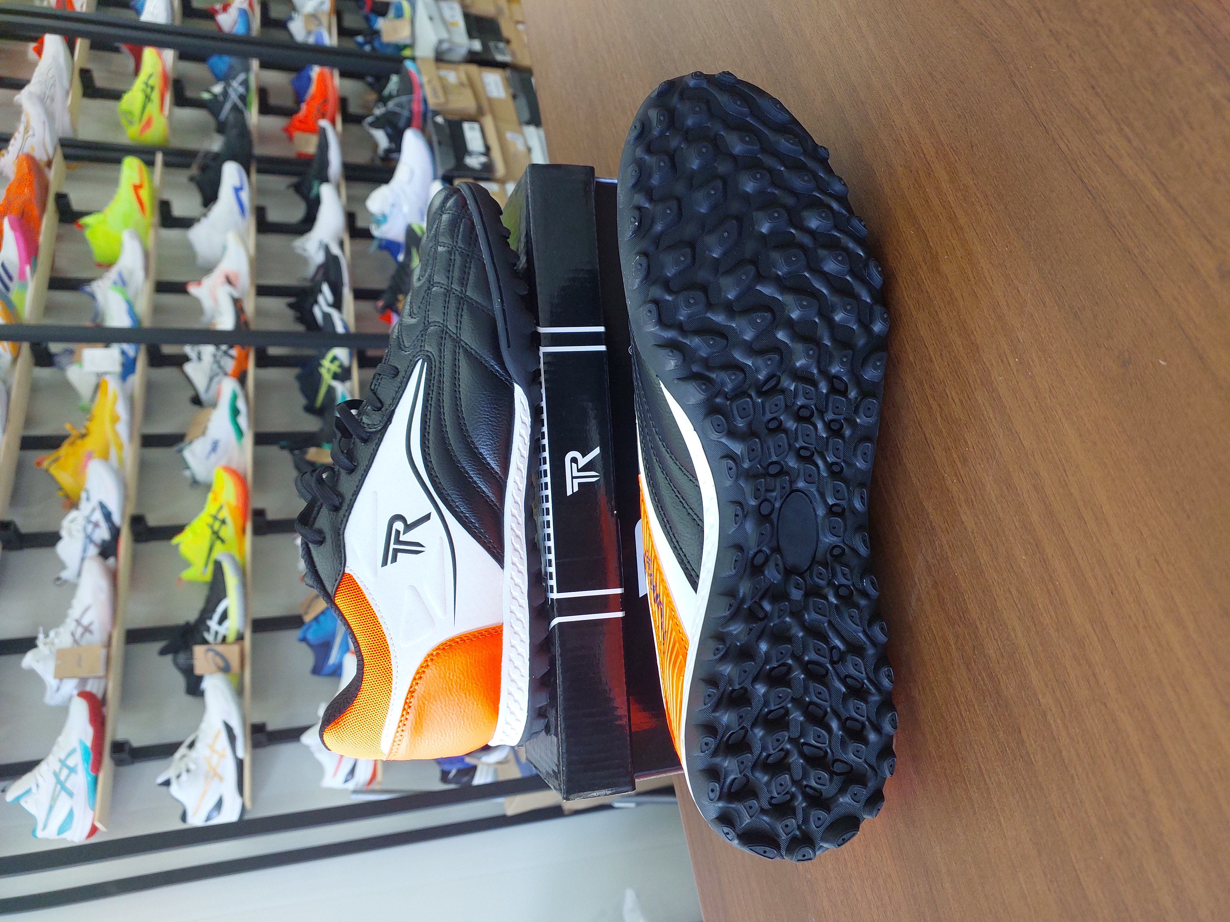 کفش فوتبال استوک ریز یا چمن مصنوعی تورف رنگ مشکی سفید نارنجی football shoes turf black white orange کفش فوتبال مصنوعی ساخت چین P.R C