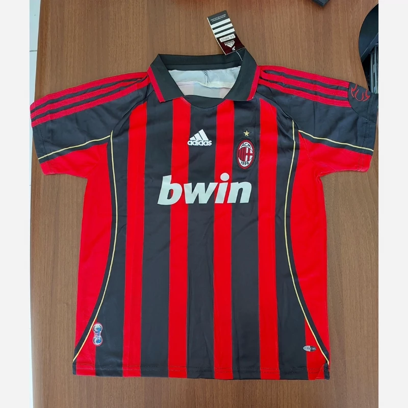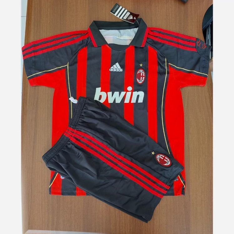 کیت تیشرت با شورت اصلی هواداری تیم میلان ایتالیا 2007رنگ راه راه مشکی قرمز تایلندی A++ Ac Milan