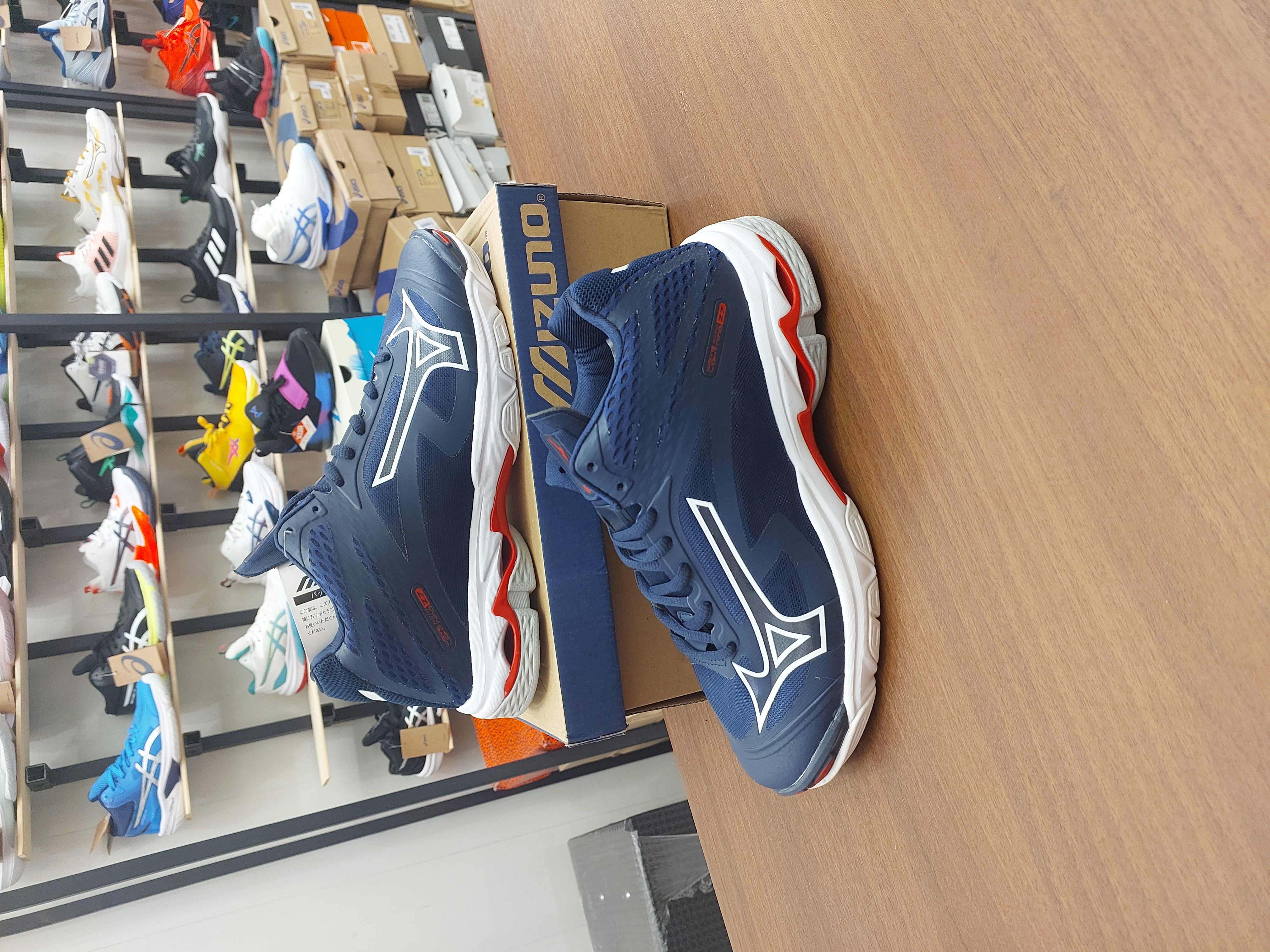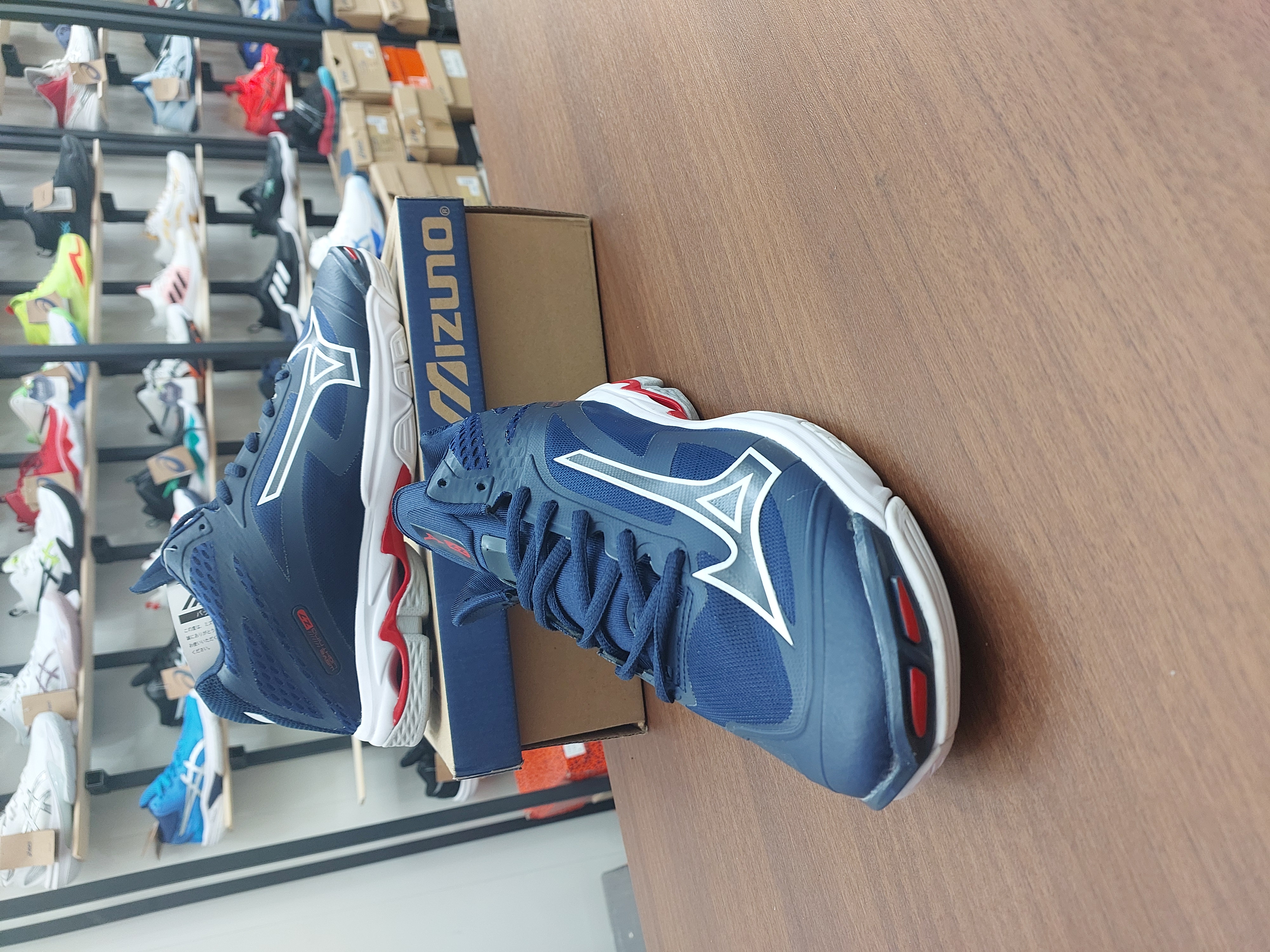کفش والیبال هندبال بسکتبال میزانو ویو لایتنینگz7 های کپی ویتنام رنگ سورمه ای قرمز mizuno wave lightning z7