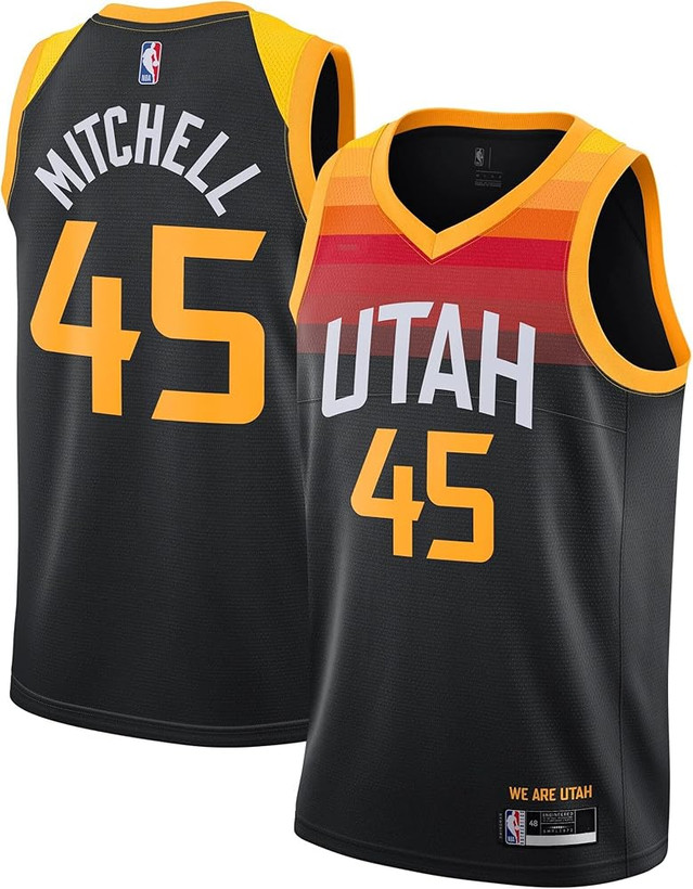 رکابی لباس با شورت بسکتبال تیم یوتا با شماره ۴۵ دونوان میچل ست بسکتبال تایلندی کلاس A++ رنگ مشکی ترکیبی با طرح پرچم آلمان پارچه سوزنی و بسیار راحت لوگو دوختی