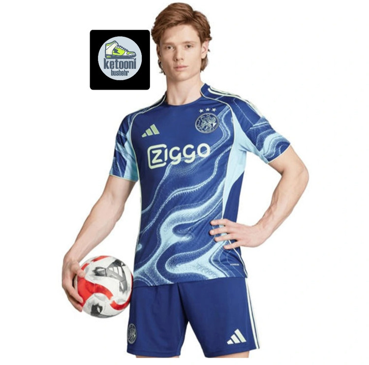 کیت دوم وتیشرت با شورت هواداری تیم آژاکس هلند 2026 رنگ سفیدتایلندی کلاس A++ رنگ آبی و دراگون