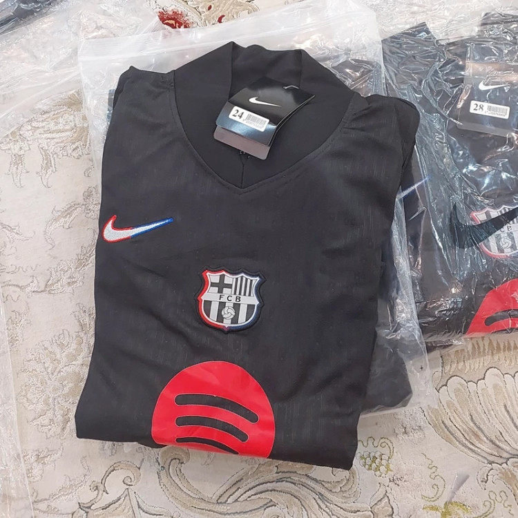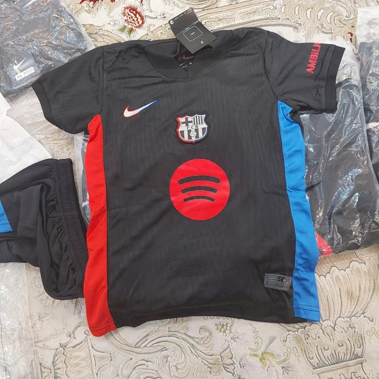 کیت تیشرت و شورت هواداری بچه گانه بارسلونا 2025 2024 رنگ مشکی