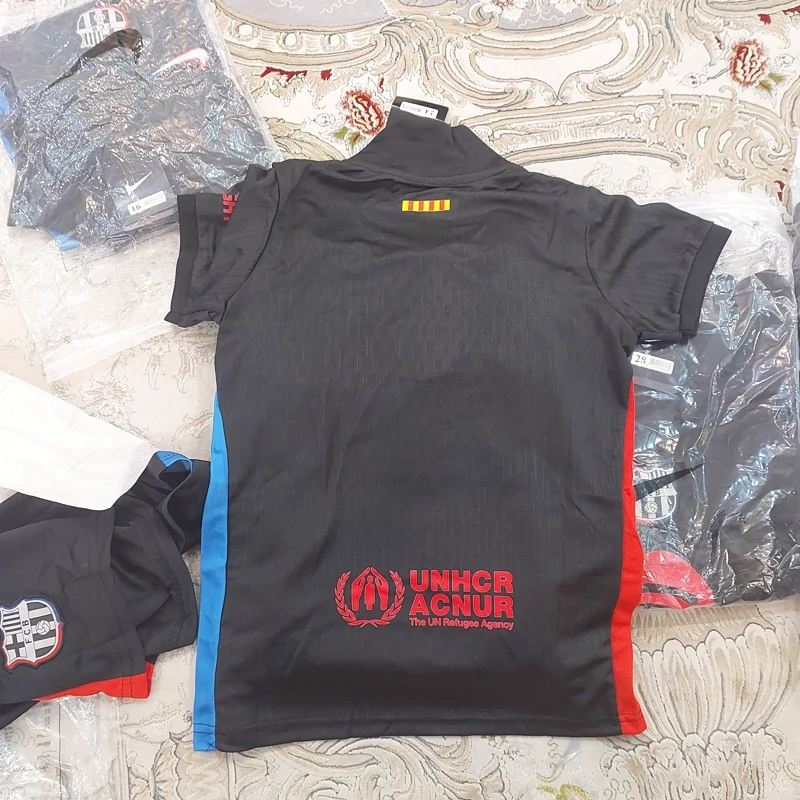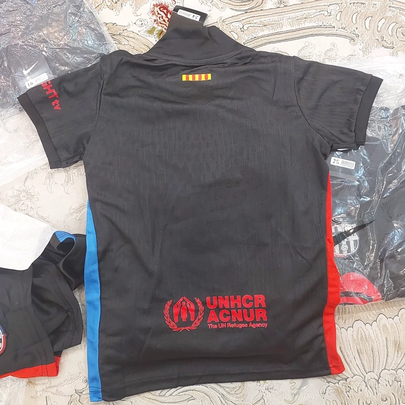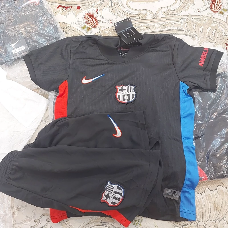 کیت تیشرت و شورت هواداری بچه گانه بارسلونا 2025 2024 رنگ مشکی