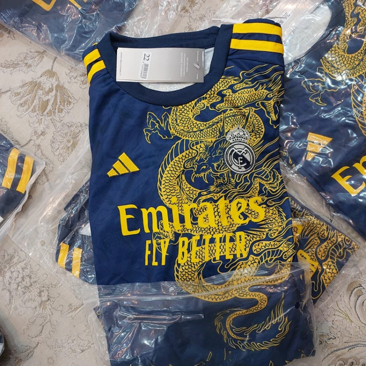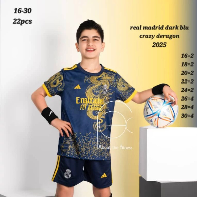 تیشرت با شورت بچه گانه تیم باشگاهی رئال مادرید اسپانیا 2025 رنگ سورمه ای طلایی