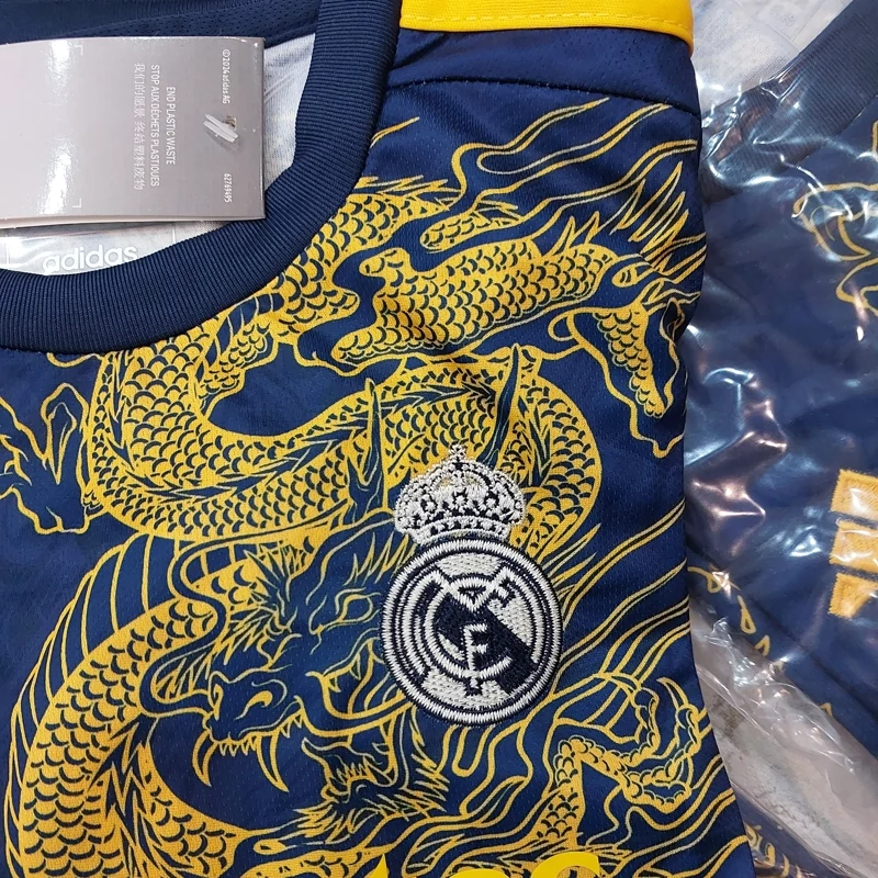 تیشرت با شورت بچه گانه تیم باشگاهی رئال مادرید اسپانیا 2025 رنگ سورمه ای طلایی
