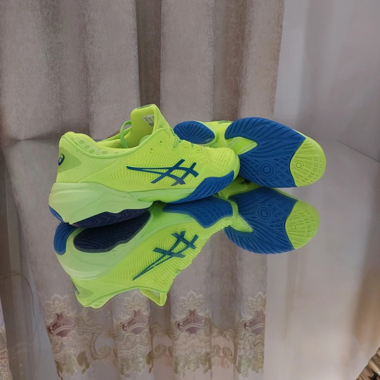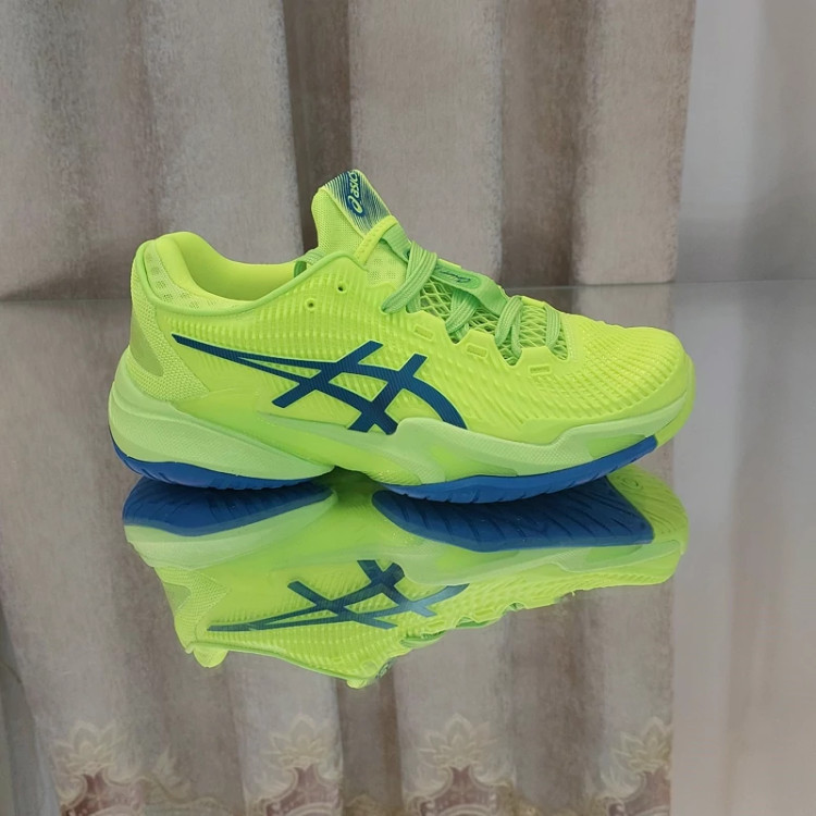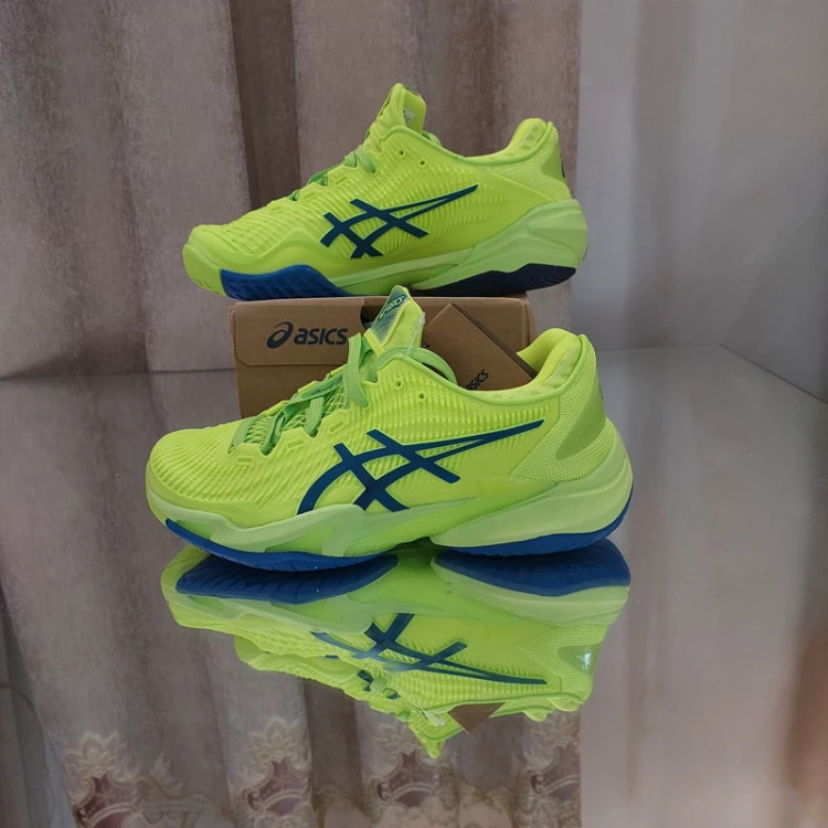 کفش تنیس خاکی اسیکس Asics tennis Court FF3 Novak CLAY- رنگ آبی فسفری کیفیت اورجینال سفارش اسیا نواک جوکوویچ