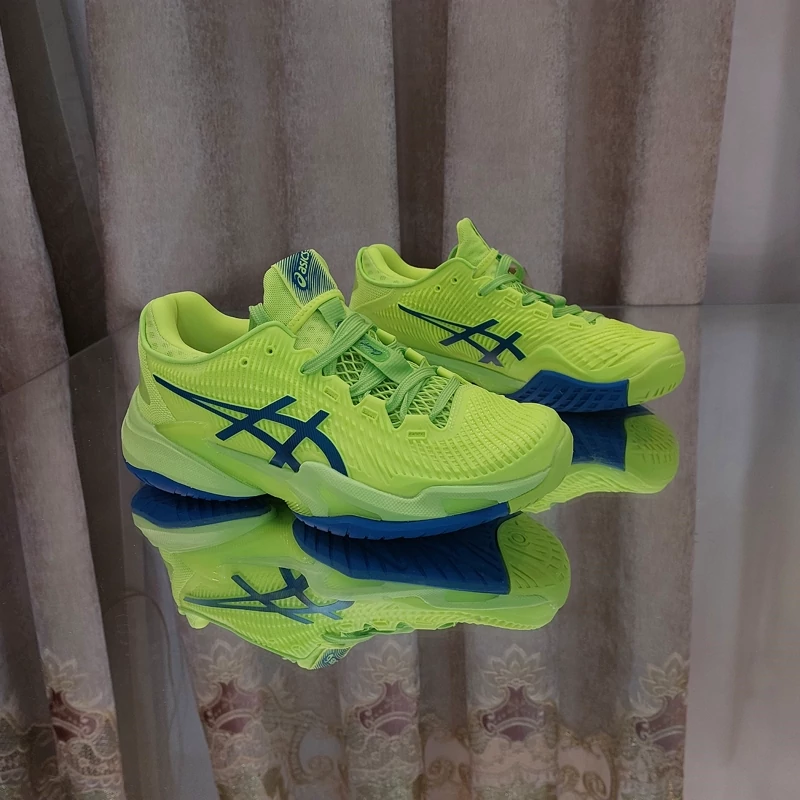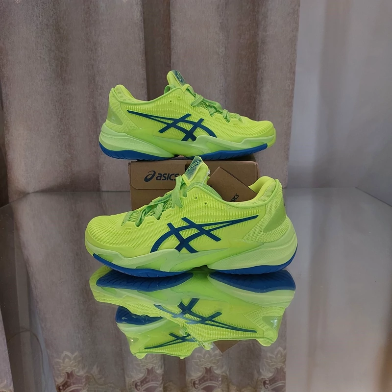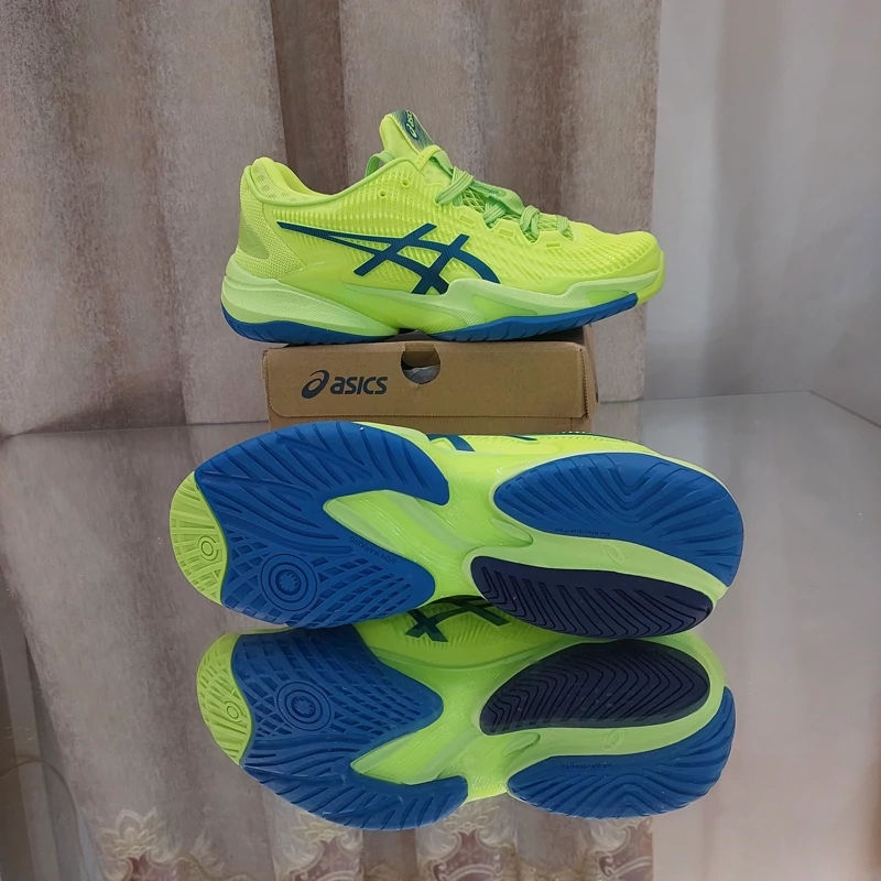 کفش تنیس خاکی اسیکس Asics tennis Court FF3 Novak CLAY- رنگ آبی فسفری کیفیت اورجینال سفارش اسیا نواک جوکوویچ