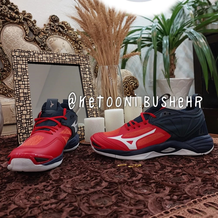 کفش والیبال بسکتبال و هندبال های کپی میزانو مومنتم رنگ سورمه ای قرمز Mizuno Wave Momentom 2Mizuno Wave Momentum 2