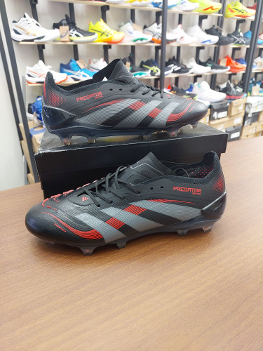 کفش فوتبال چمن آدیداس پردیتور الیت استوکدار بندی رنگ مشکی قرمز Adidas Predator Elite FG Teaser