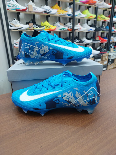 کفش فوتبال چمن نایک ایر زوم ویپور الیت۱۸ استوکدار بندی رنگ آبی سفیدNike Air Zoom VAPOR 18 ELITE FG