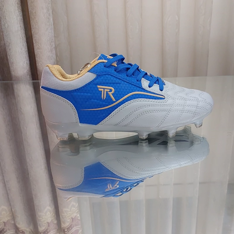 کفش فوتبال استوک دار تورف رنگ آبی و طوسی چمن کفش فوتبال بچه گانه طبیعی و مصنوعی