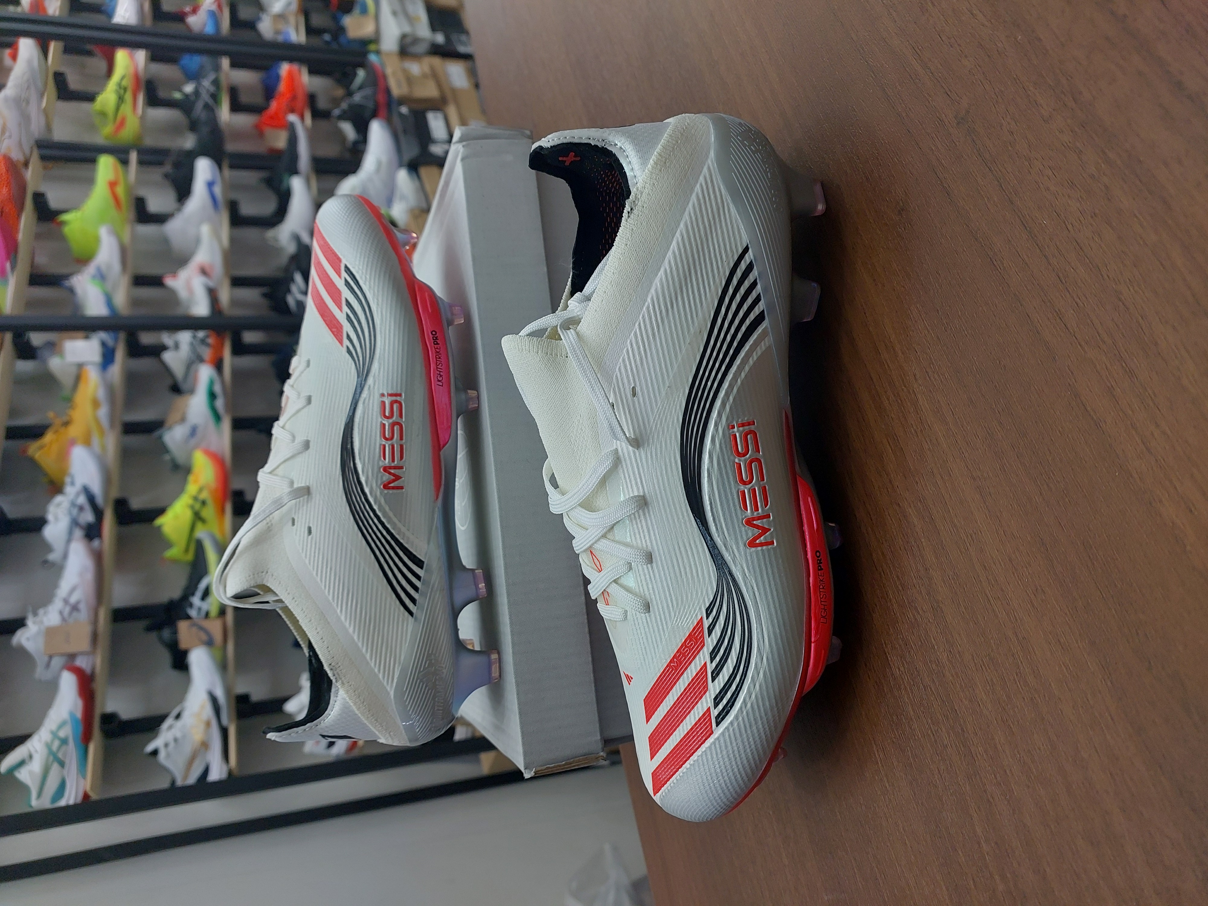 کفش فوتبال چمن آدیداس اف۵۰ مسی استوکدار رنگ سفیدصورتی Adidas f50+fg