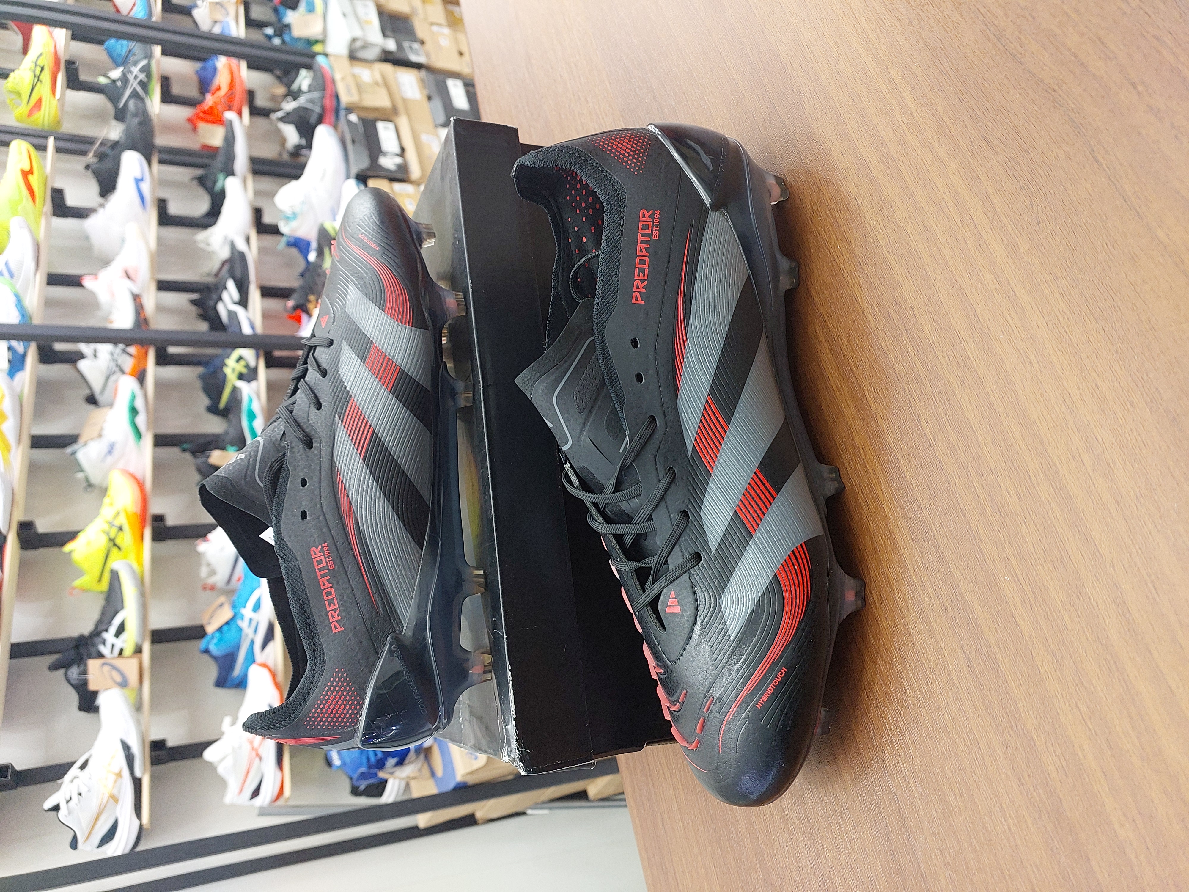 کفش فوتبال چمن آدیداس پردیتور الیت استوکدار بندی رنگ مشکی قرمز Adidas Predator Elite FG Teaser