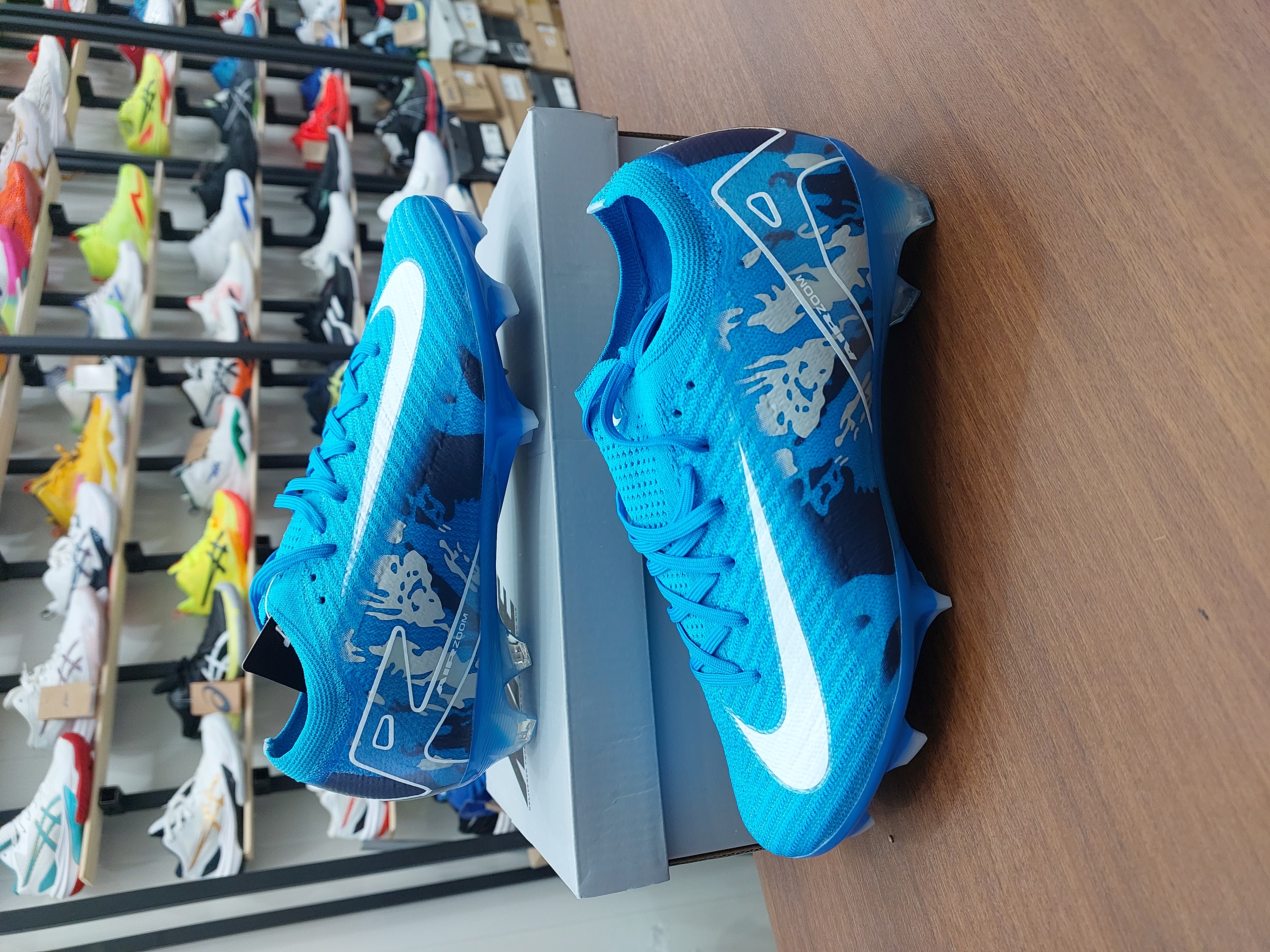 کفش فوتبال چمن نایک ایر زوم ویپور الیت۱۸ استوکدار بندی رنگ آبی سفیدNike Air Zoom VAPOR 18 ELITE FG