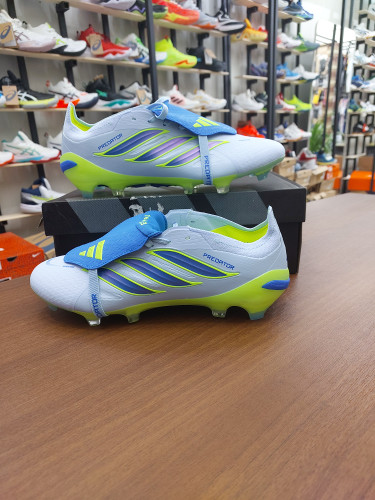 کفش فوتبال چمن آدیداس استوکدار بلینگام رنگ ابی سبز فسفری Adidas Predator