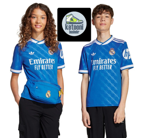 ناموجودکیت سوم وتیشرت با شورت هواداری تیم رئال مادرید ۲۰۲۶ رنگ آبی تایلندی کلاس A++ kit Real madrid 2026 بچه گانه
