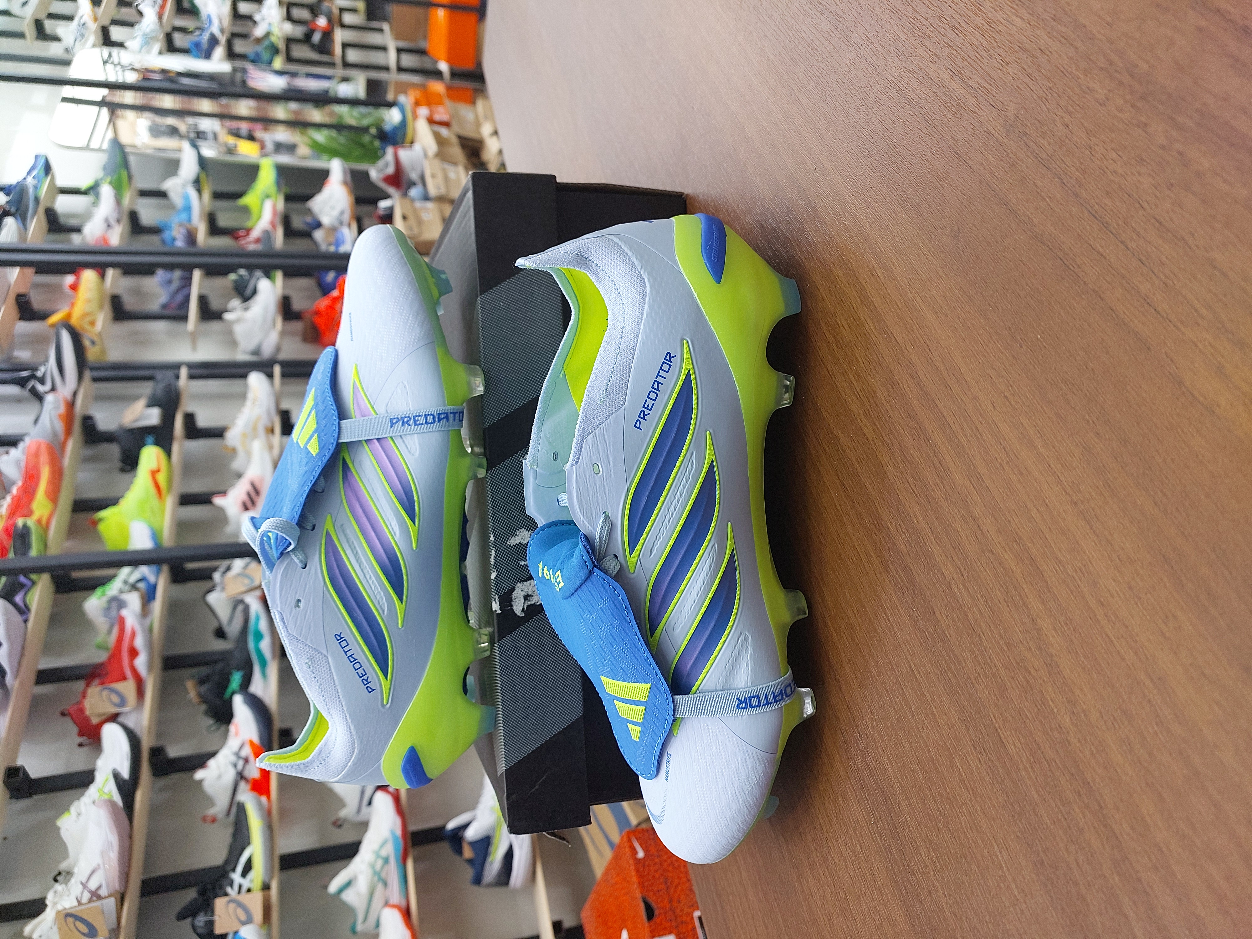 کفش فوتبال چمن آدیداس استوکدار بلینگام رنگ ابی سبز فسفری Adidas Predator